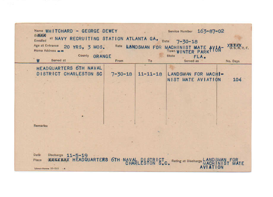Florida. Military Dept. George Dewey Whitchard. . State Archives of Florida, Florida Memory. <https://www.floridamemory.com/items/show/232020>, accessed 23 December 2025.