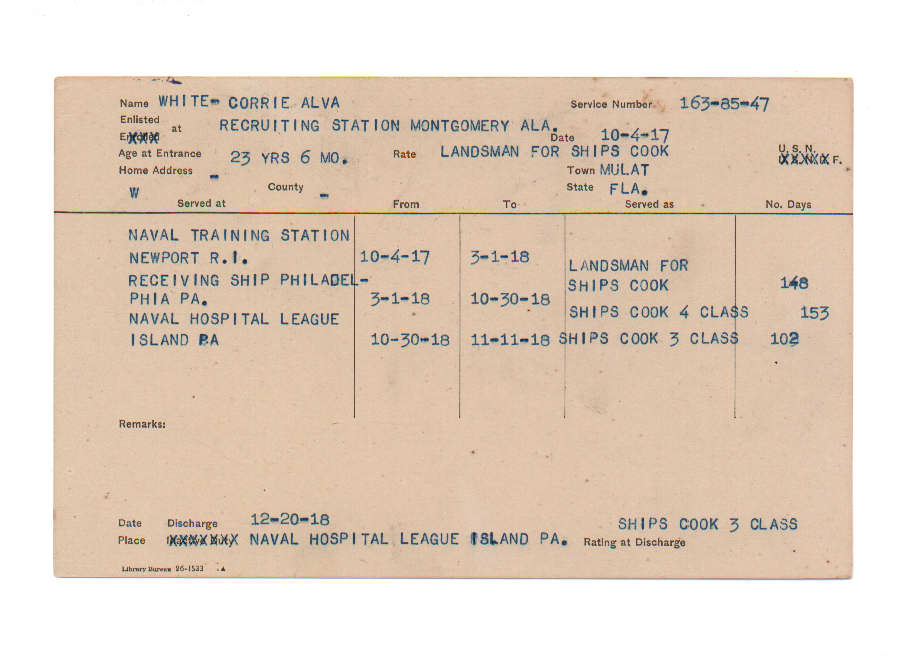Florida. Military Dept. Corrie Alva White. . State Archives of Florida, Florida Memory. <https://www.floridamemory.com/items/show/232025>, accessed 23 December 2025.
