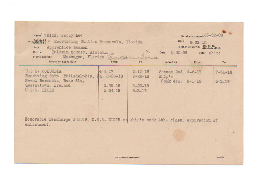 Florida. Military Dept. Percy Lee White. . State Archives of Florida, Florida Memory. <https://www.floridamemory.com/items/show/232032>, accessed 24 December 2025.