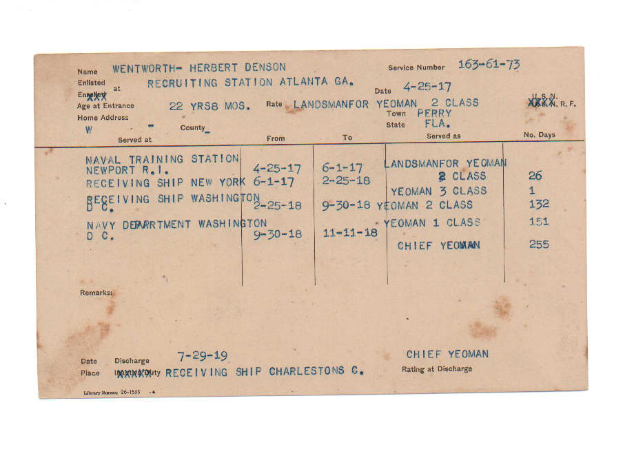 Florida. Military Dept. Herbert Denson Wentworth. . State Archives of Florida, Florida Memory. <https://www.floridamemory.com/items/show/232058>, accessed 26 December 2025.