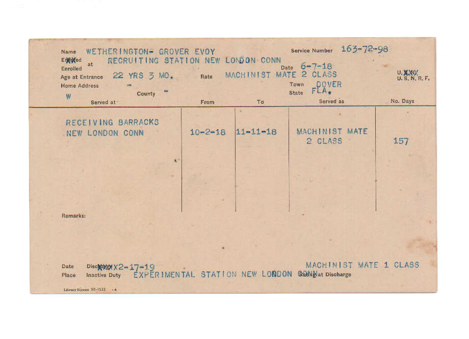 Florida. Military Dept. Grover Evoy Wetherington. . State Archives of Florida, Florida Memory. <https://www.floridamemory.com/items/show/232072>, accessed 27 December 2025.