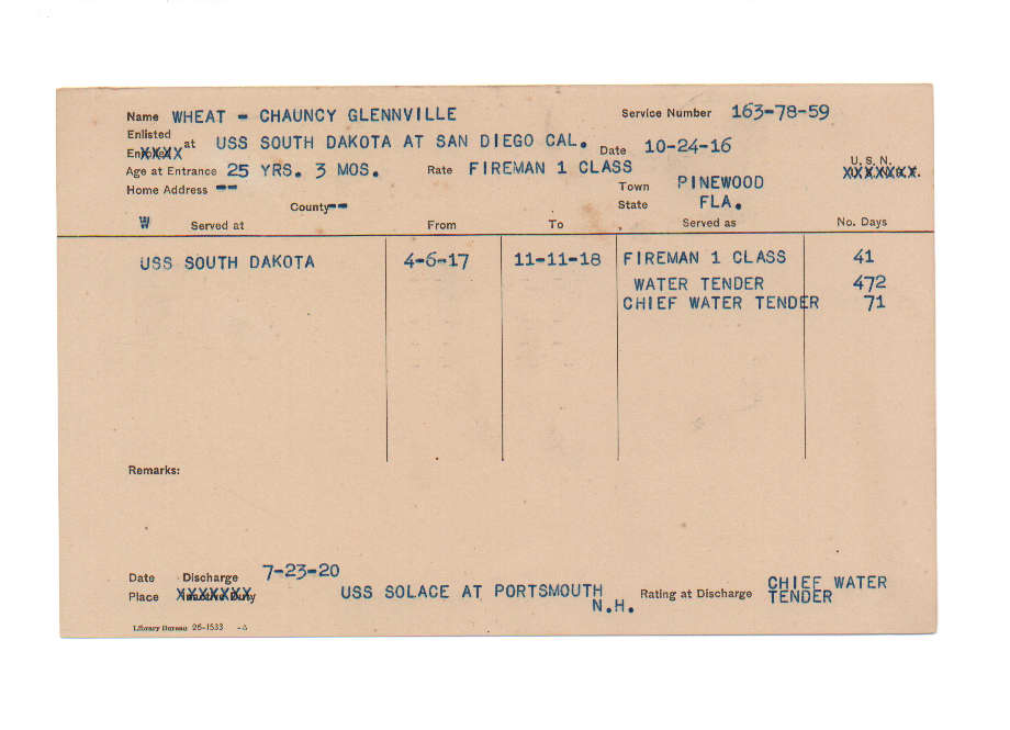 Florida. Military Dept. Chauncy Glennville Wheat. . State Archives of Florida, Florida Memory. <https://www.floridamemory.com/items/show/232078>, accessed 27 December 2025.