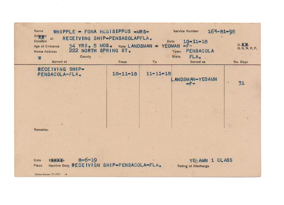 Florida. Military Dept. Fona Hegisippus Whipple. . State Archives of Florida, Florida Memory. <https://www.floridamemory.com/items/show/232086>, accessed 29 December 2025.