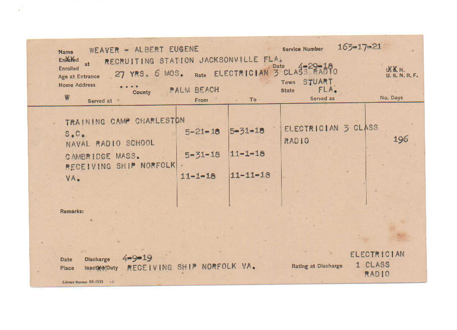Florida. Military Dept. Albert Eugene Weaver. . State Archives of Florida, Florida Memory. <https://www.floridamemory.com/items/show/232093>, accessed 29 December 2025.