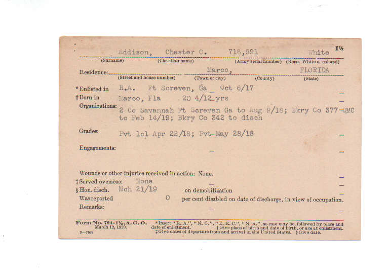 Florida. Military Dept. Chester C Addison. . State Archives of Florida, Florida Memory. Accessed 31 Dec. 2025.<https://www.floridamemory.com/items/show/232117>