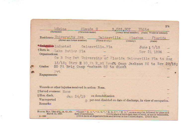 Florida. Military Dept. Claude H Adkins. . State Archives of Florida, Florida Memory. <https://www.floridamemory.com/items/show/232131>, accessed 1 January 2026.