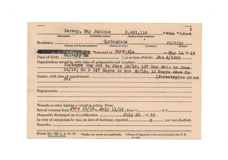 Florida. Military Dept. May Junious Harvey. . State Archives of Florida, Florida Memory. <https://www.floridamemory.com/items/show/232154>, accessed 3 January 2026.
