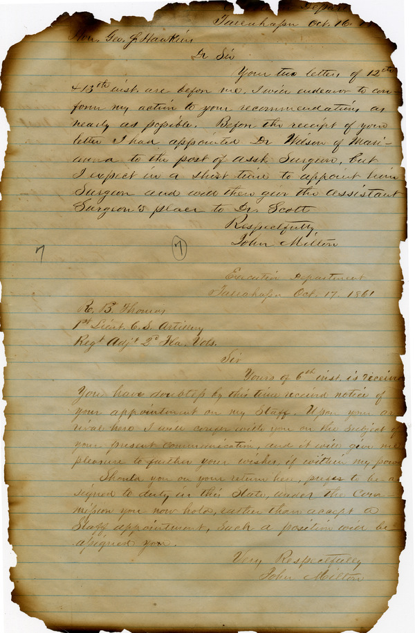 Office of the Governor of Florida. Milton Letterbook: October 16, 1861. 1861-10-17. State Archives of Florida, Florida Memory. <https://www.floridamemory.com/items/show/265633>, accessed 30 November 2025.