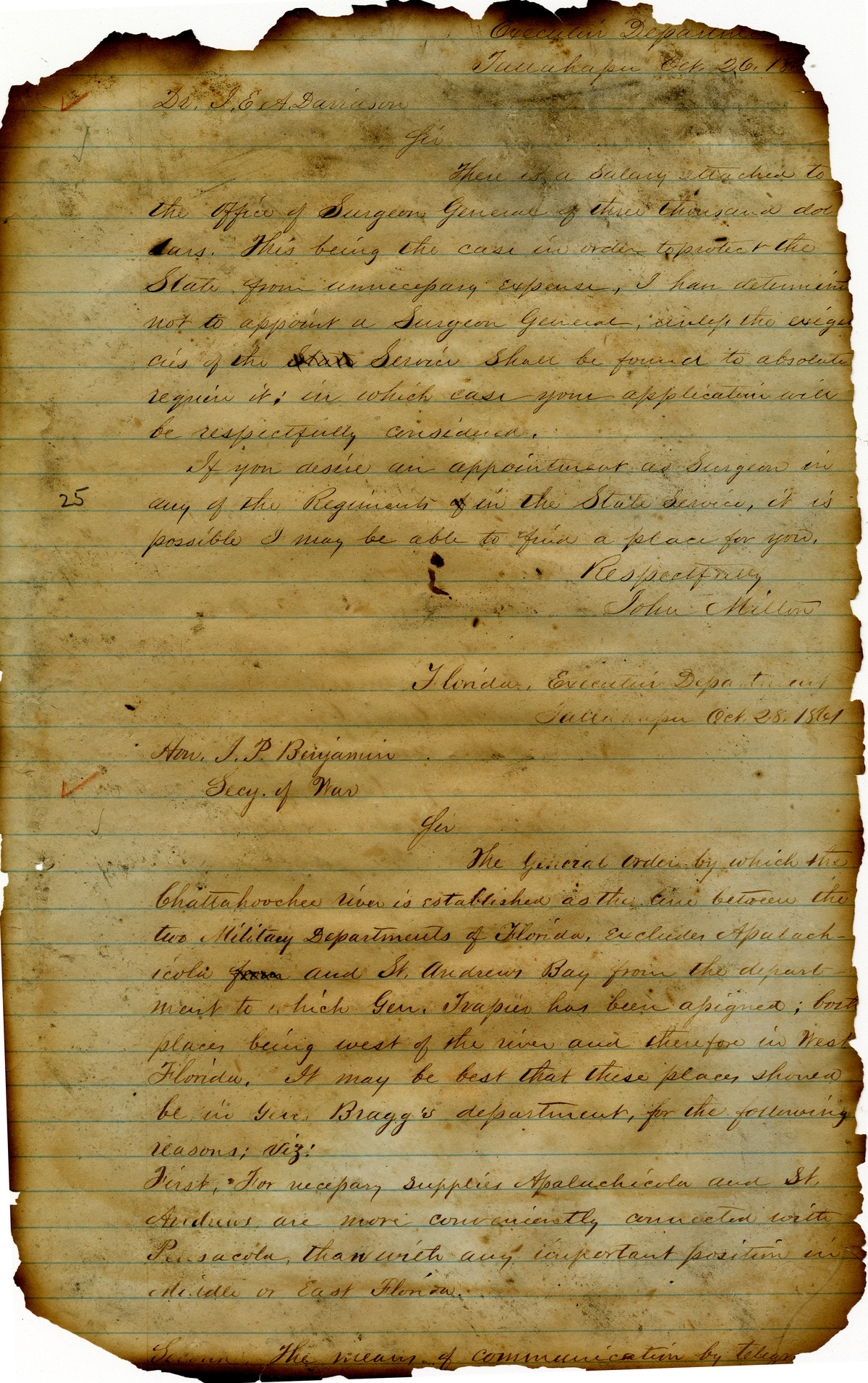 Office of the Governor of Florida. Milton Letterbook: October 26, 1861. 1861-10-28. State Archives of Florida, Florida Memory. <https://www.floridamemory.com/items/show/265651>, accessed 29 November 2025.