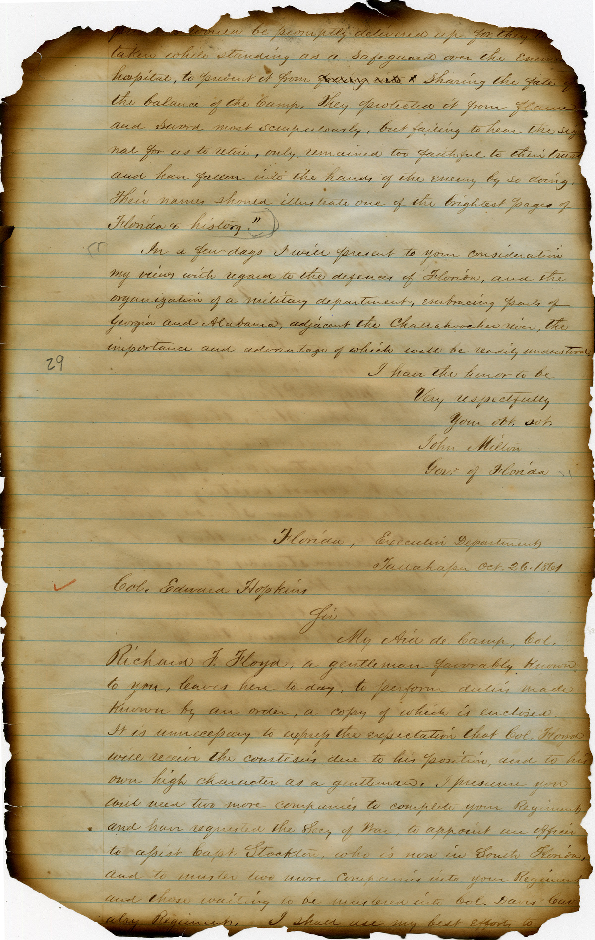 Office of the Governor of Florida. Milton Letterbook: October 28, 1861. 1861-10-26. State Archives of Florida, Florida Memory. <https://www.floridamemory.com/items/show/265655>, accessed 29 November 2025.