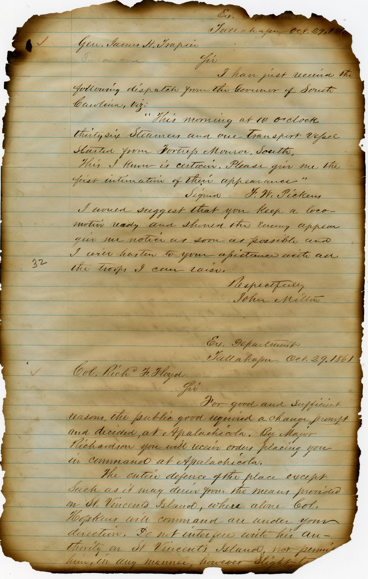 Office of the Governor of Florida. Milton Letterbook: October 29, 1861. 1861-10-29. State Archives of Florida, Florida Memory. <https://www.floridamemory.com/items/show/265658>, accessed 29 November 2025.