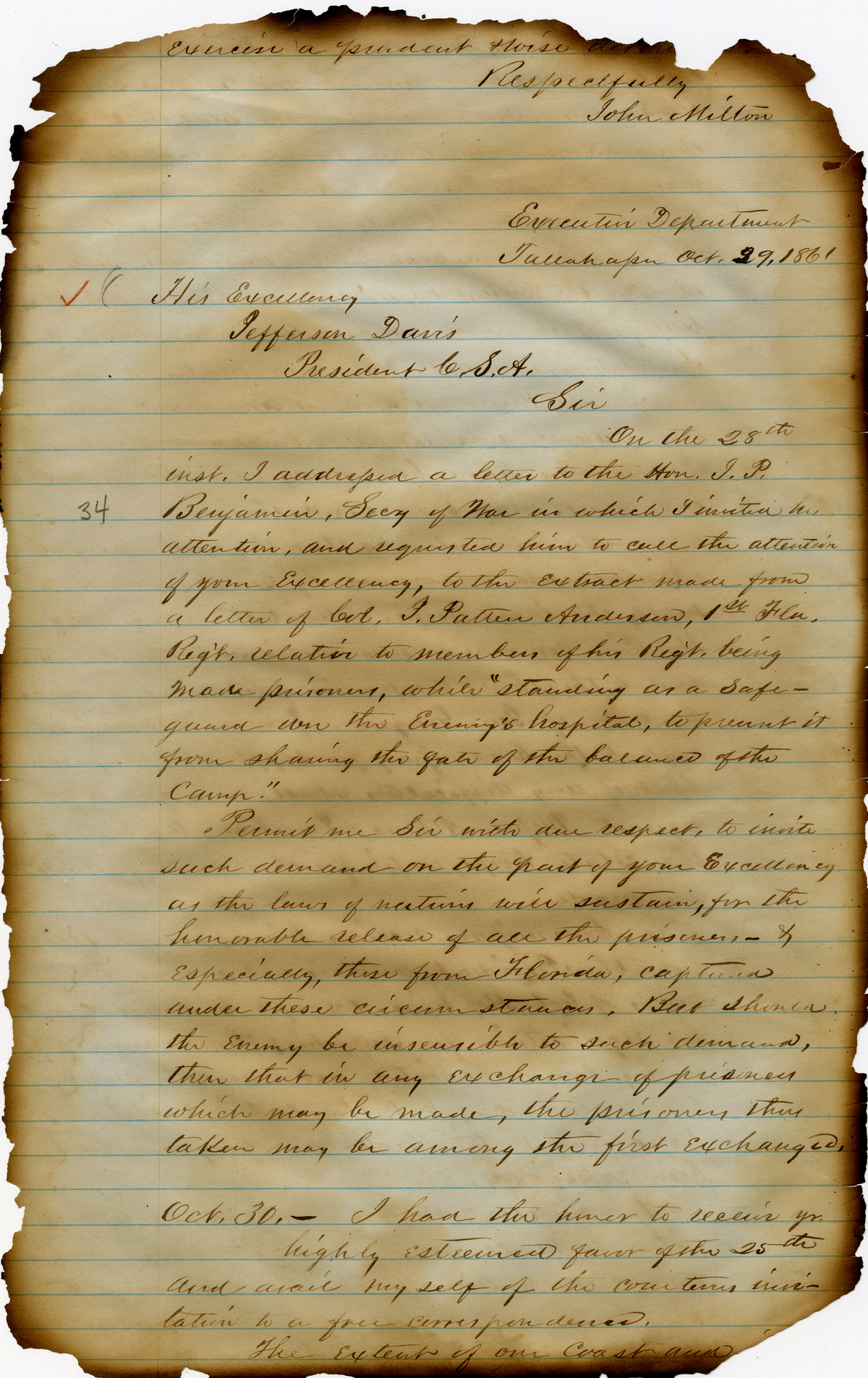 Office of the Governor of Florida. Milton Letterbook: October 29, 1861. 1861-10-30. State Archives of Florida, Florida Memory. <https://www.floridamemory.com/items/show/265660>, accessed 29 November 2025.
