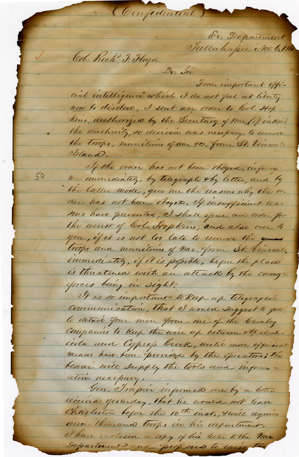 Office of the Governor of Florida. Milton Letterbook: November 6, 1861. 1861-11-06. State Archives of Florida, Florida Memory. Accessed 28 Nov. 2025.<https://www.floridamemory.com/items/show/265676>