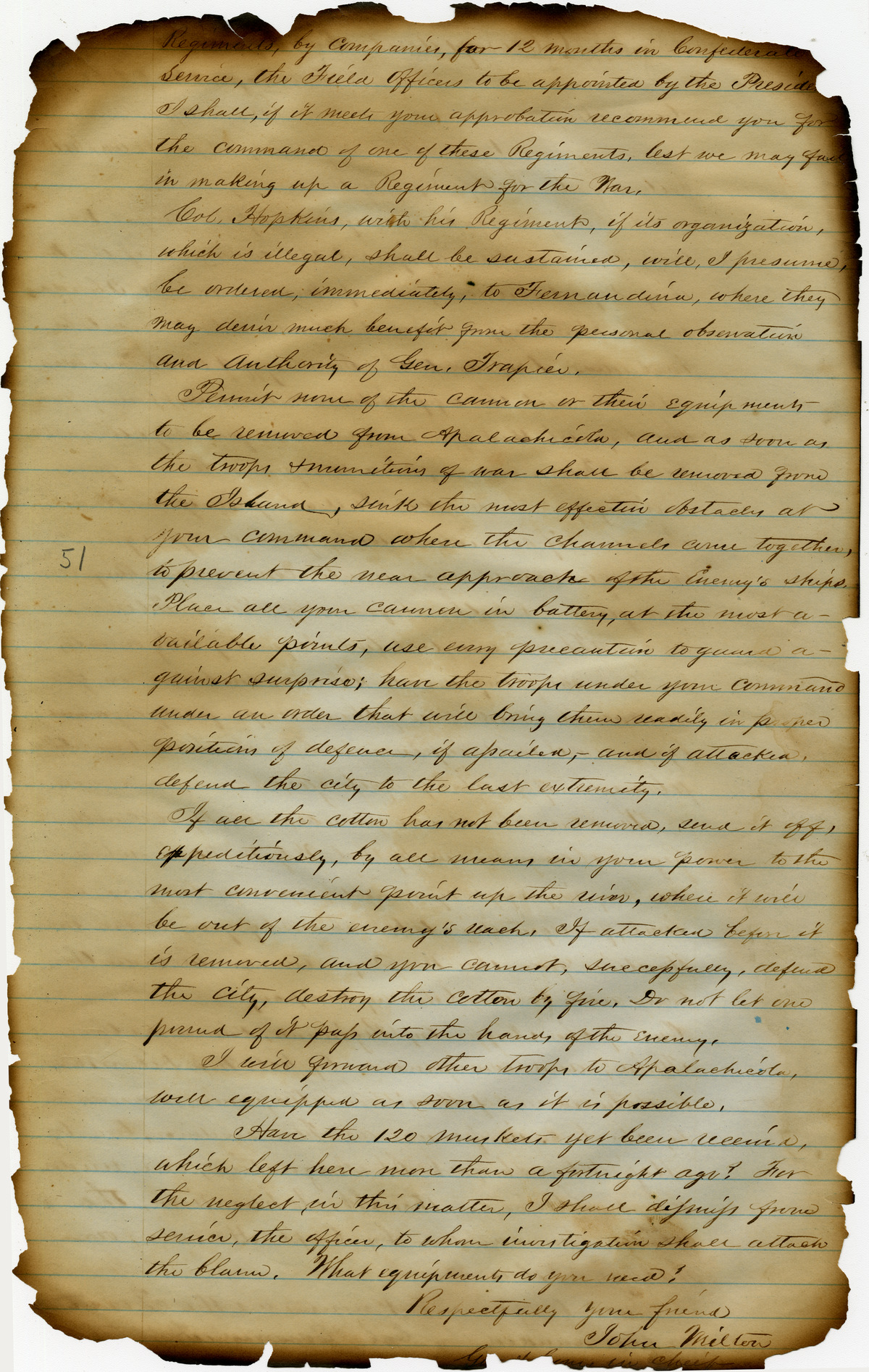 Office of the Governor of Florida. Milton Letterbook: November 6, 1861. 1861-11-06. State Archives of Florida, Florida Memory. <https://www.floridamemory.com/items/show/265677>, accessed 28 November 2025.