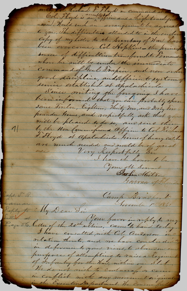 Office of the Governor of Florida. Milton Letterbook: November 22, 1861. 1861-11-17. State Archives of Florida, Florida Memory. Accessed 27 Nov. 2025.<https://www.floridamemory.com/items/show/265697>