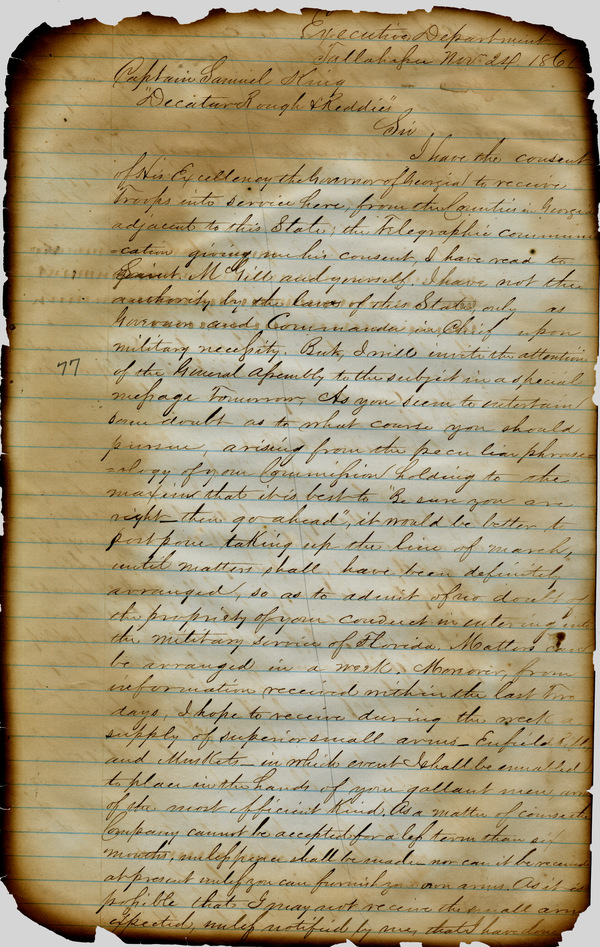 Office of the Governor of Florida. Milton Letterbook: November 24, 1861. 1861-11-24. State Archives of Florida, Florida Memory. <https://www.floridamemory.com/items/show/265702>, accessed 27 November 2025.