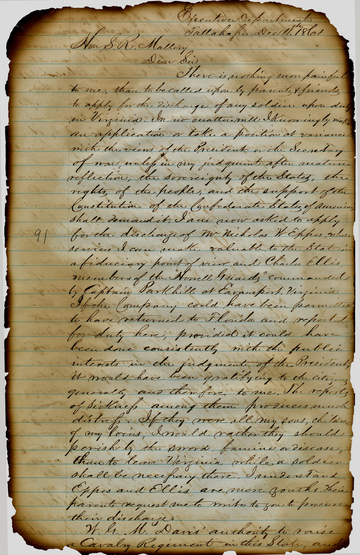 Office of the Governor of Florida. Milton Letterbook: December 11, 1861. 1861-12-11. State Archives of Florida, Florida Memory. <https://www.floridamemory.com/items/show/265718>, accessed 26 November 2025.