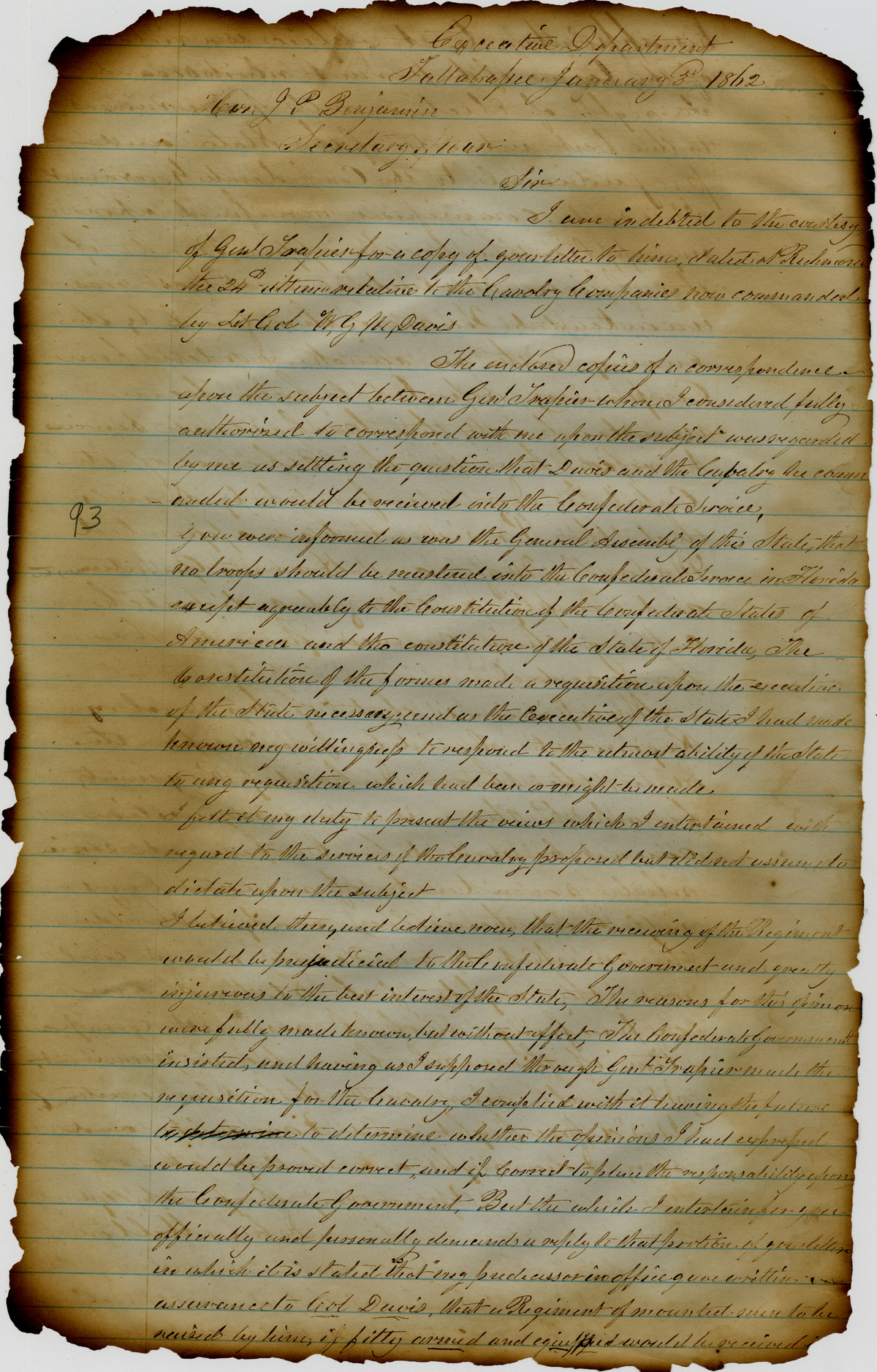 Office of the Governor of Florida. Milton Letterbook: January 3, 1862. 1862-01-03. State Archives of Florida, Florida Memory. <https://www.floridamemory.com/items/show/265720>, accessed 26 November 2025.