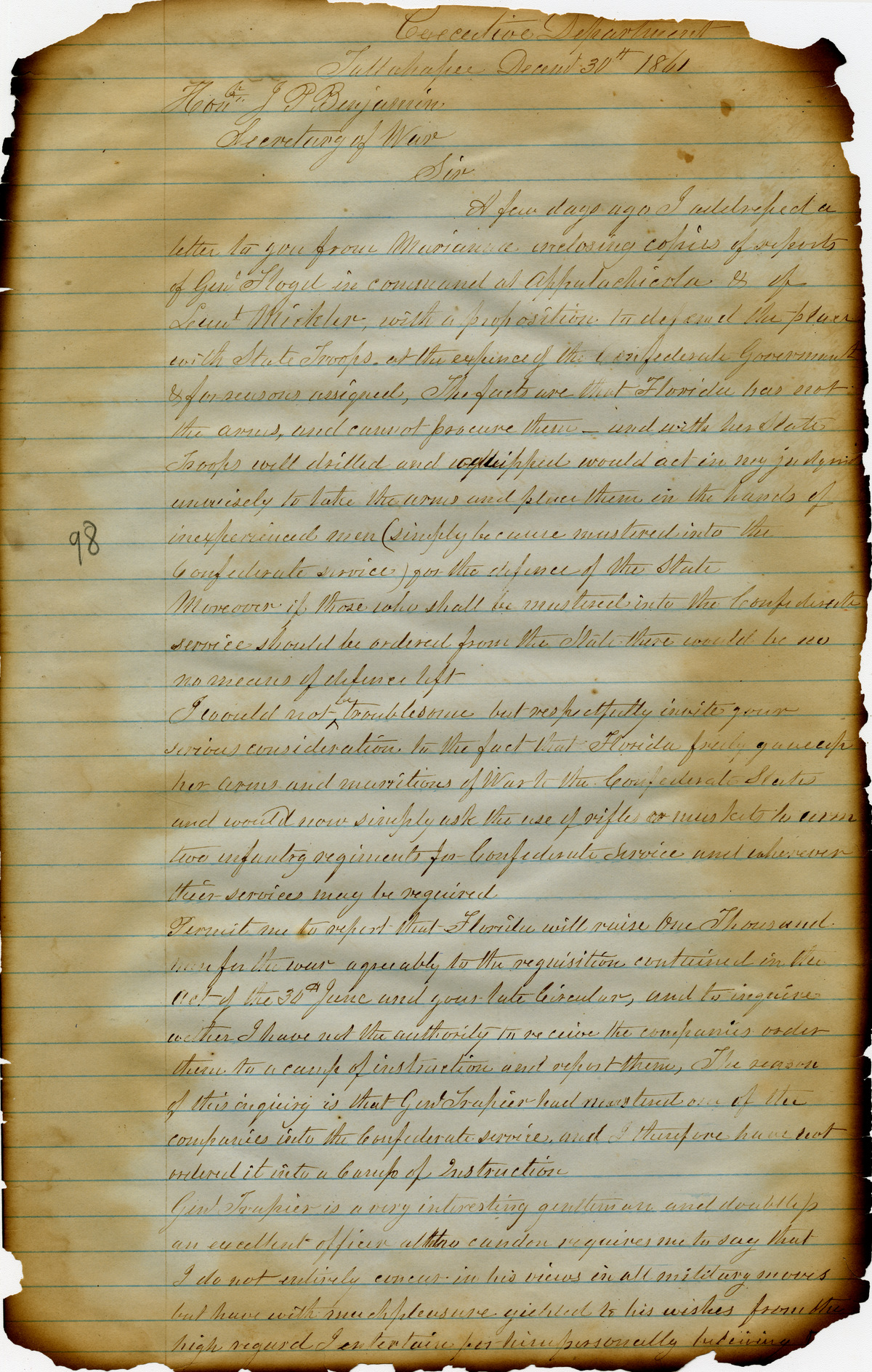 Office of the Governor of Florida. Milton Letterbook: December 30, 1861. 1861-12-30. State Archives of Florida, Florida Memory. <https://www.floridamemory.com/items/show/265725>, accessed 26 November 2025.