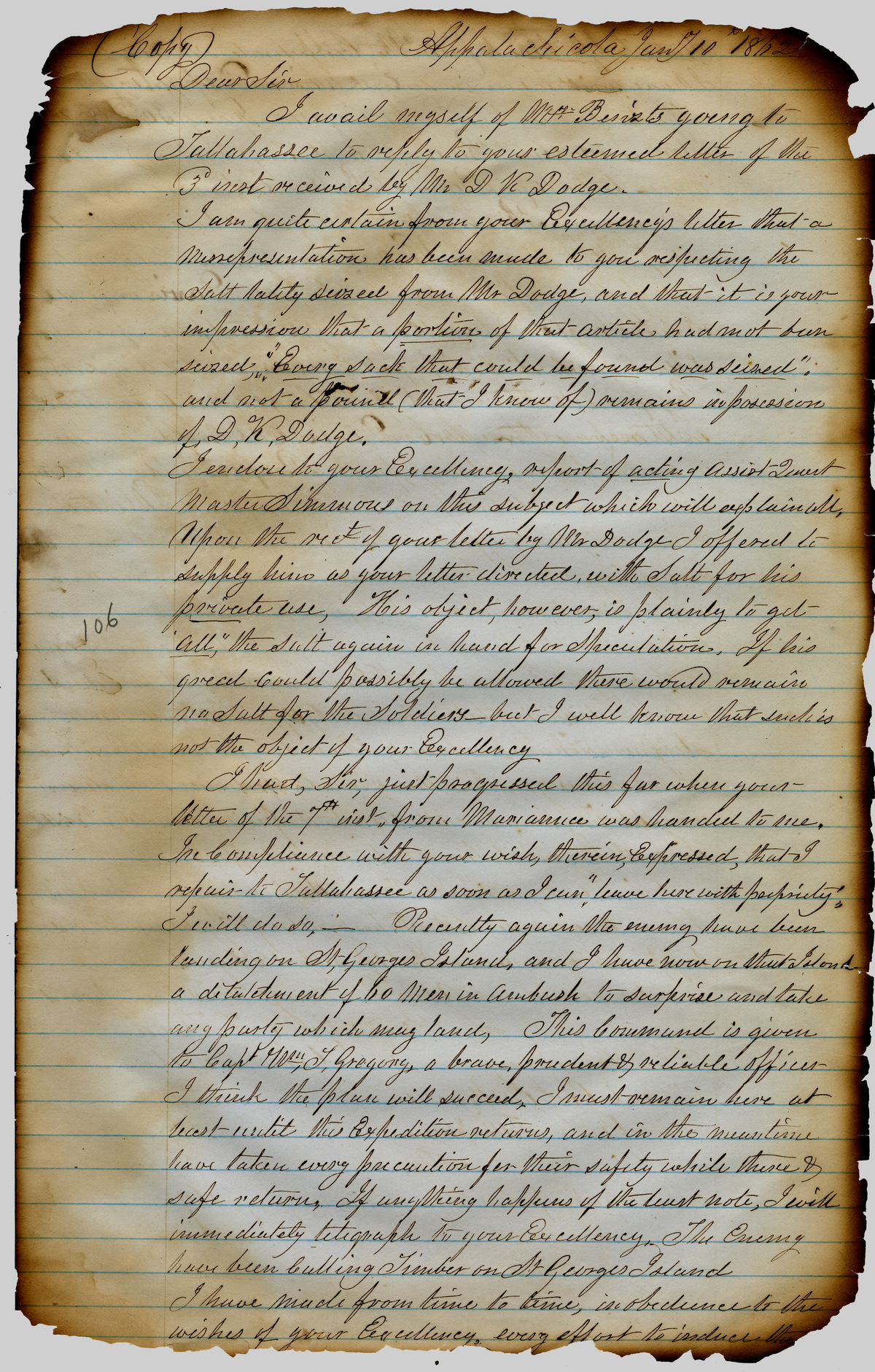 Office of the Governor of Florida. Milton Letterbook: January 10, 1862. 1862-01-10. State Archives of Florida, Florida Memory. <https://www.floridamemory.com/items/show/265733>, accessed 26 November 2025.
