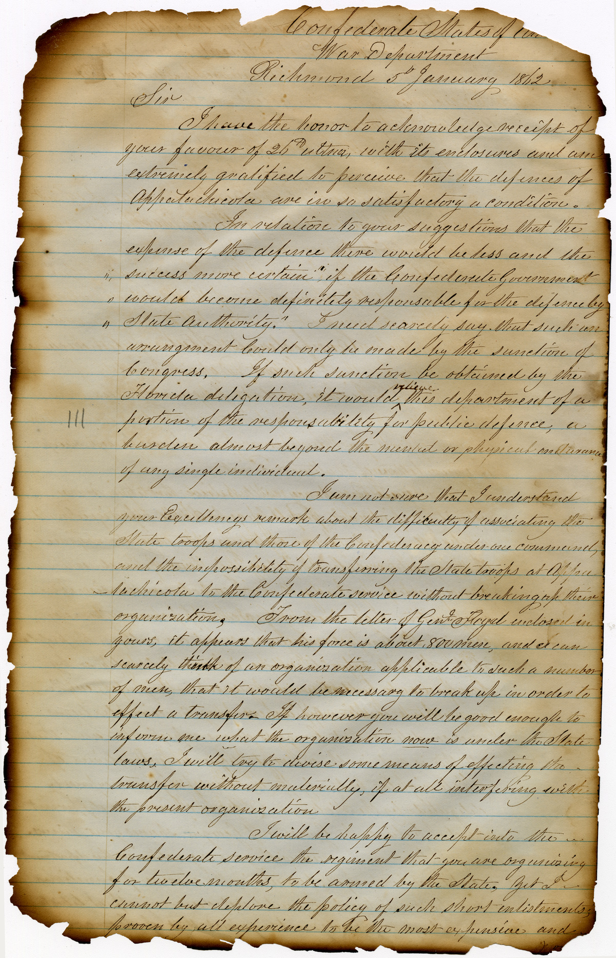 Office of the Governor of Florida. Milton Letterbook: January 5, 1862. 1862-01-05. State Archives of Florida, Florida Memory. Accessed 26 Nov. 2025.<https://www.floridamemory.com/items/show/265738>