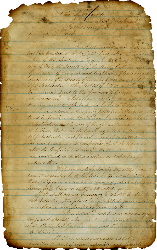 Office of the Governor of Florida. Milton Letterbook: February 20, 1862. 1862-02-20. State Archives of Florida, Florida Memory. Accessed 26 Nov. 2025.<https://www.floridamemory.com/items/show/265748>