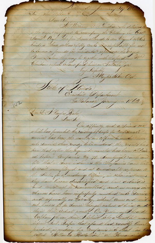Office of the Governor of Florida. Milton Letterbook: January 29, 1862. 1862-01-29. State Archives of Florida, Florida Memory. Accessed 26 Nov. 2025.<https://www.floridamemory.com/items/show/265769>