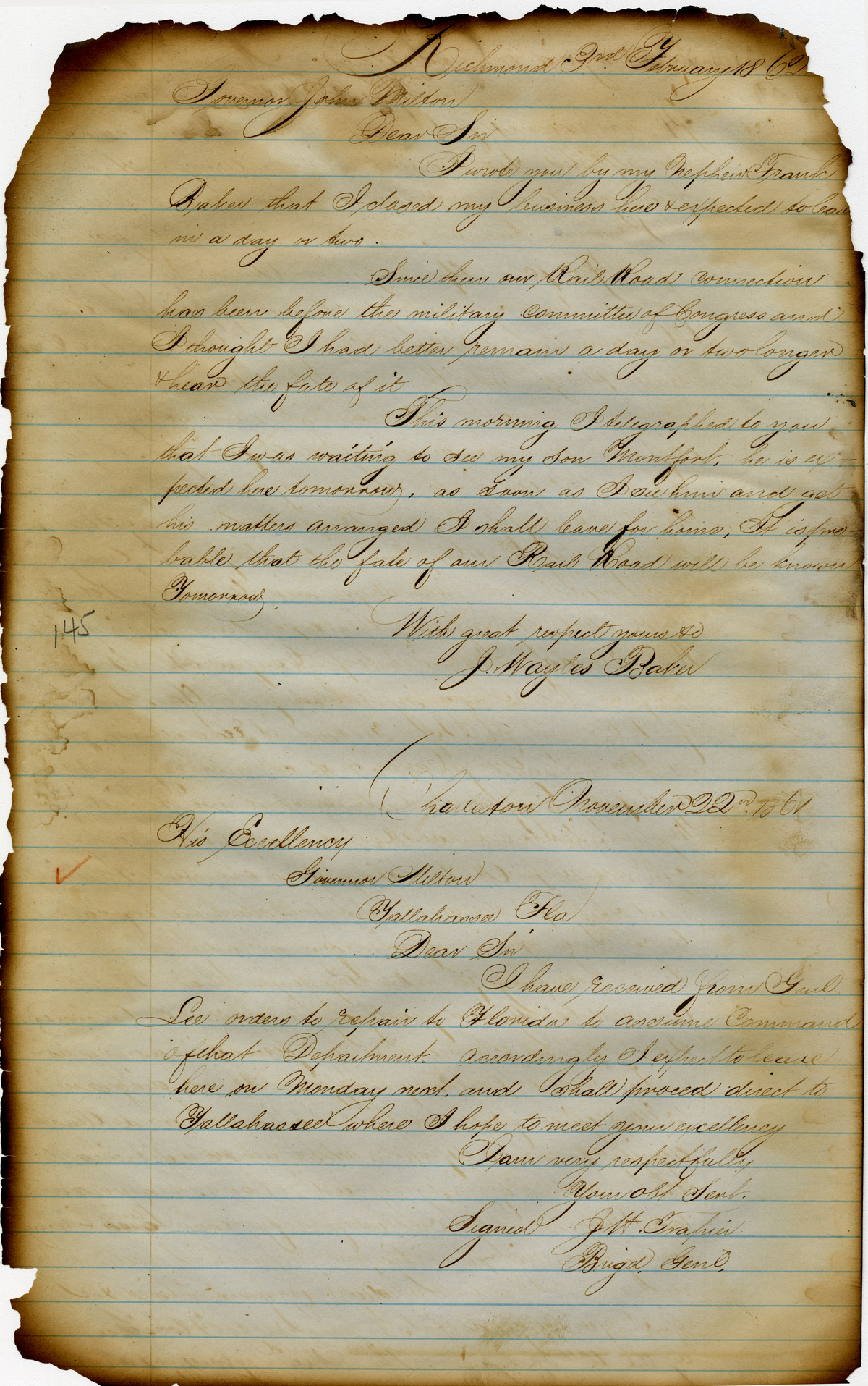 Office of the Governor of Florida. Milton Letterbook: February 3, 1862. 1861-11-22. State Archives of Florida, Florida Memory. <https://www.floridamemory.com/items/show/265772>, accessed 26 November 2025.