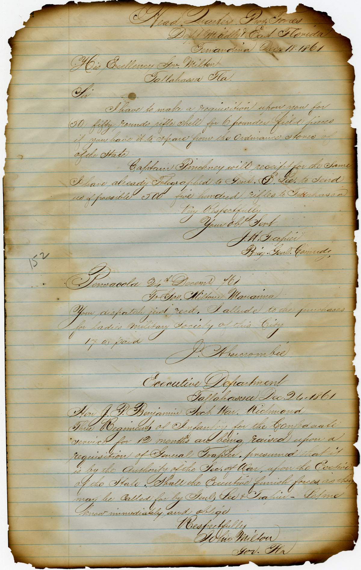 Office of the Governor of Florida. Milton Letterbook: December 11, 1861. 1861-12-24. State Archives of Florida, Florida Memory. <https://www.floridamemory.com/items/show/265779>, accessed 25 November 2025.
