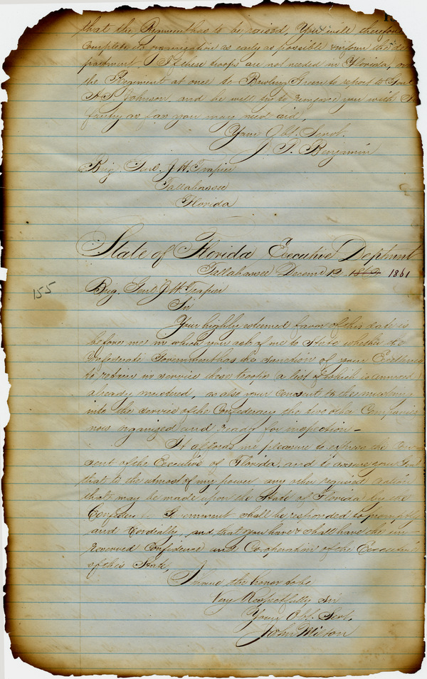 Office of the Governor of Florida. Milton Letterbook: December 24, 1861. 1861-12-12. State Archives of Florida, Florida Memory. <https://www.floridamemory.com/items/show/265782>, accessed 25 November 2025.