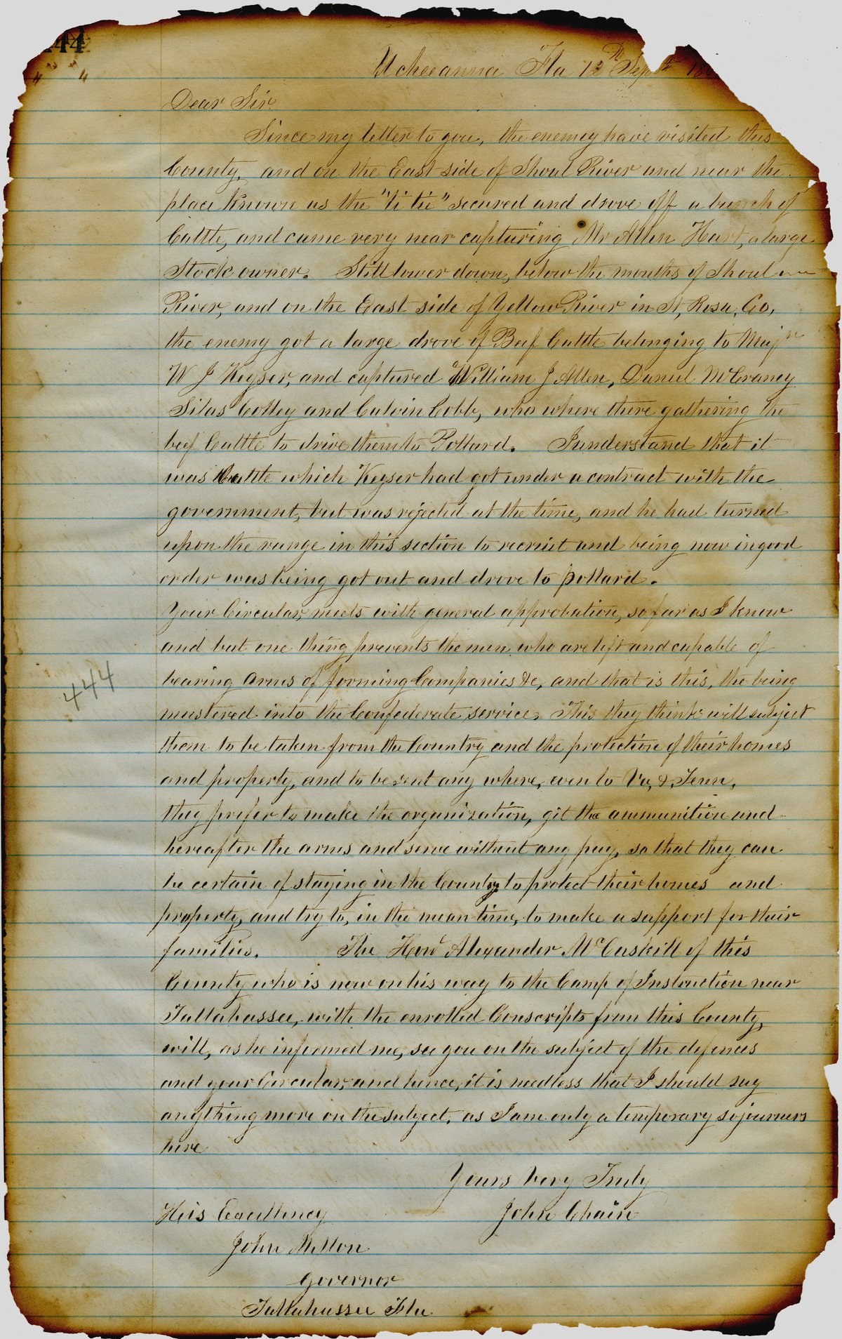 Office of the Governor of Florida. Milton Letterbook: September 12, 1862. 1862-09-12. State Archives of Florida, Florida Memory. <https://www.floridamemory.com/items/show/266050>, accessed 25 November 2025.