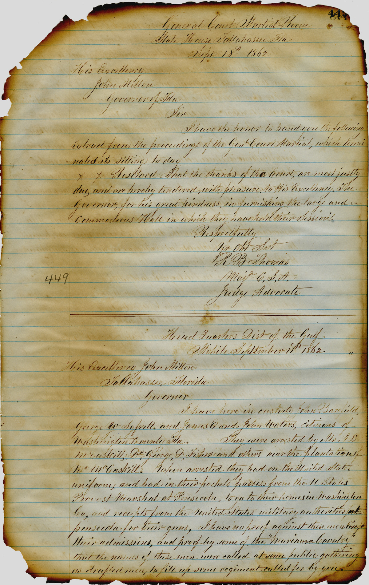 Office of the Governor of Florida. Milton Letterbook: September 18, 1862. 1862-09-11. State Archives of Florida, Florida Memory. <https://www.floridamemory.com/items/show/266055>, accessed 26 November 2025.
