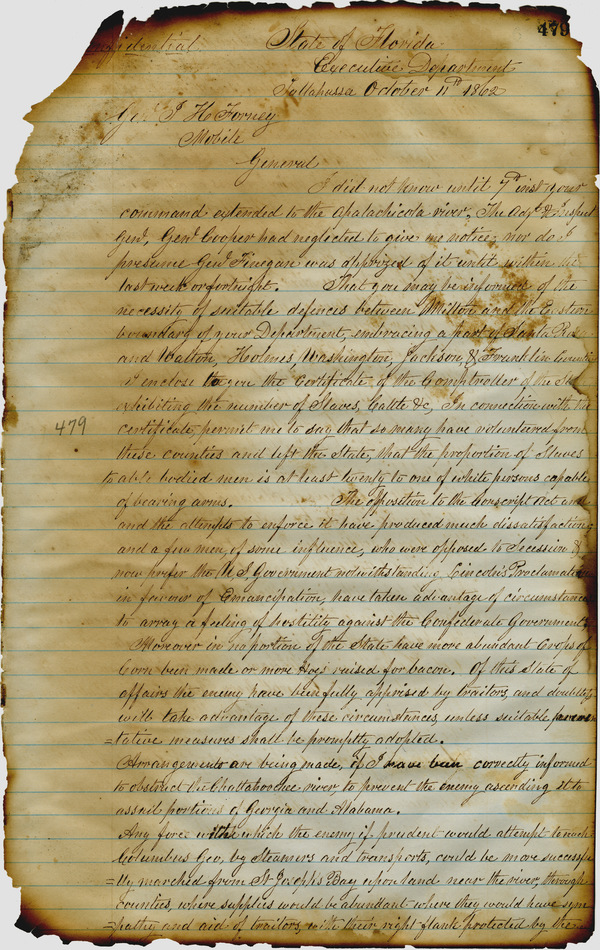 Office of the Governor of Florida. Milton Letterbook: October 11, 1862. 1862-10-11. State Archives of Florida, Florida Memory. <https://www.floridamemory.com/items/show/266085>, accessed 26 November 2025.