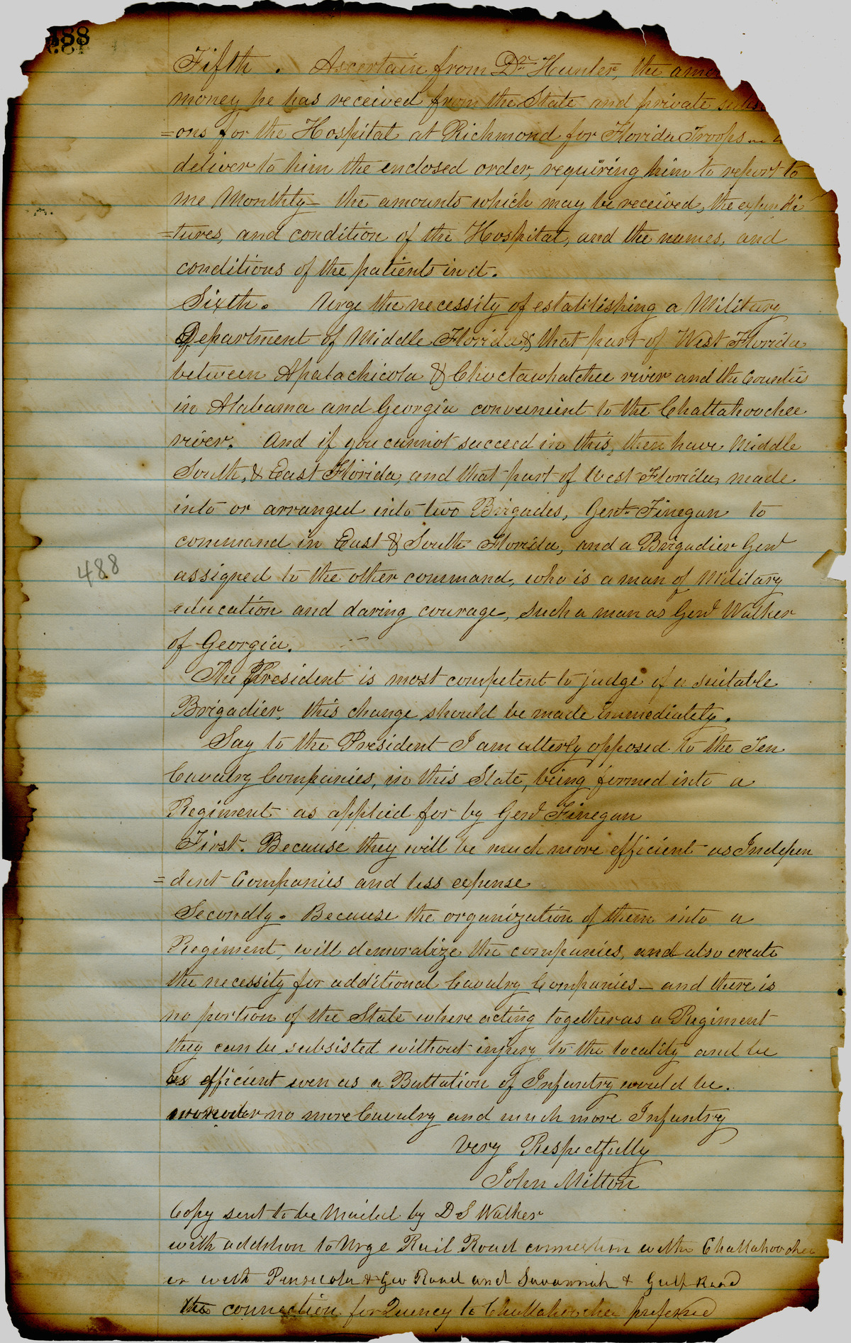 Office of the Governor of Florida. Milton Letterbook: October 11, 1862. 1862-10-11. State Archives of Florida, Florida Memory. Accessed 26 Nov. 2025.<https://www.floridamemory.com/items/show/266094>