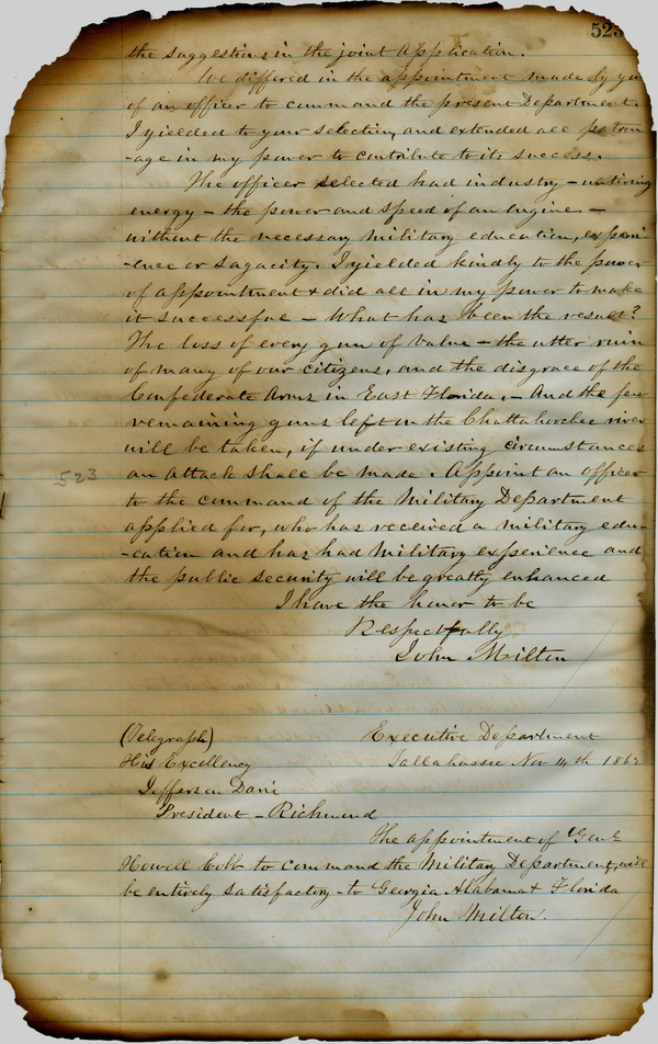Milton Letterbook: November 11, 1862