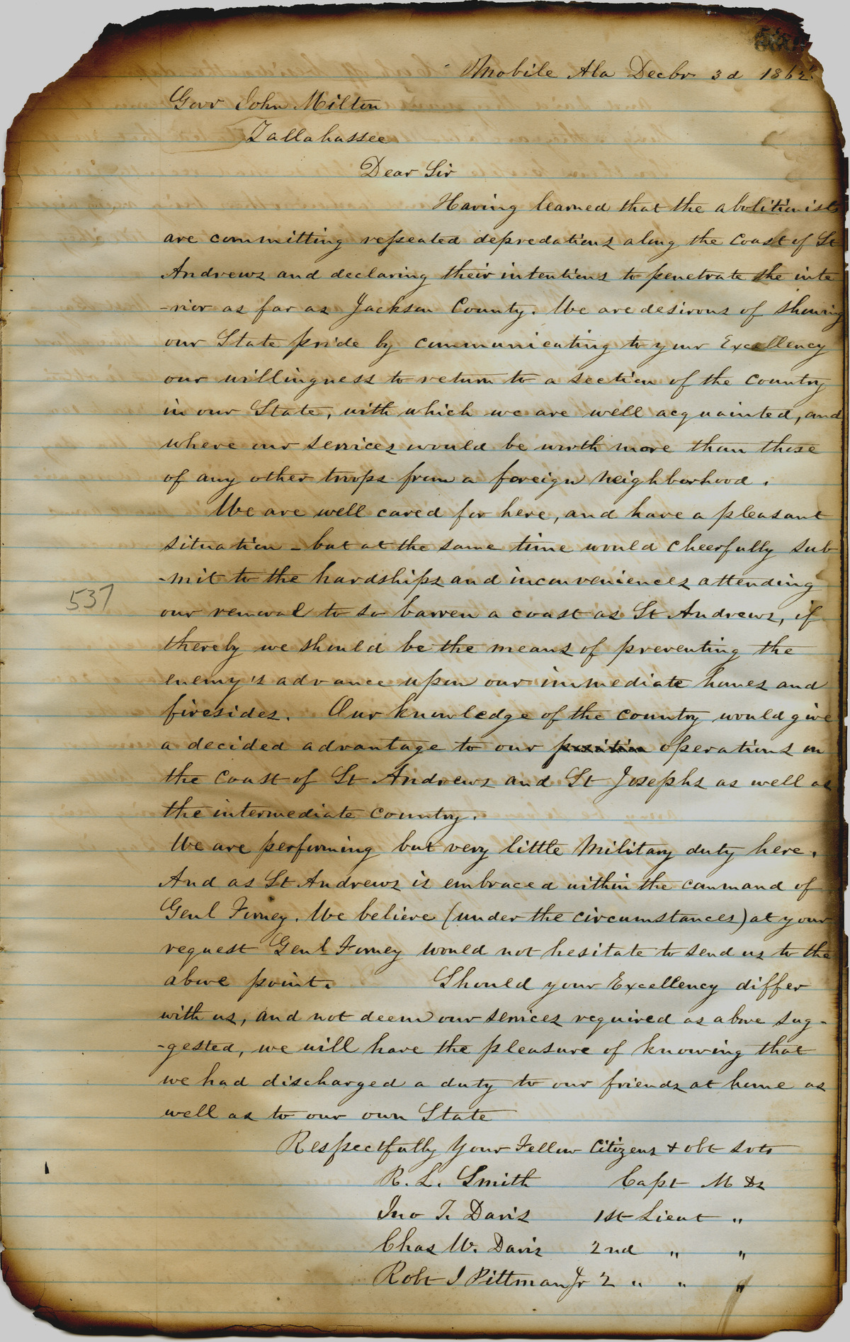 Office of the Governor of Florida. Milton Letterbook: December 3, 1862. 1862-12-03. State Archives of Florida, Florida Memory. Accessed 26 Nov. 2025.<https://www.floridamemory.com/items/show/266143>