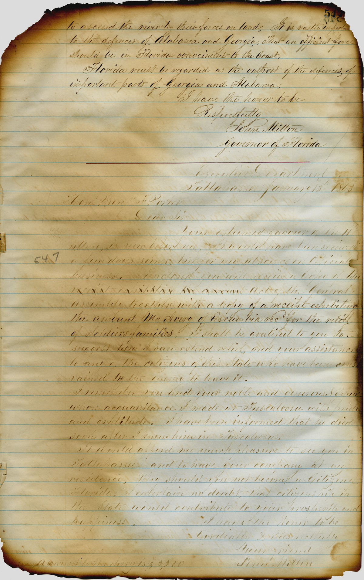 Office of the Governor of Florida. Milton Letterbook: January 10, 1863. 1863-01-13. State Archives of Florida, Florida Memory. <https://www.floridamemory.com/items/show/266153>, accessed 26 November 2025.