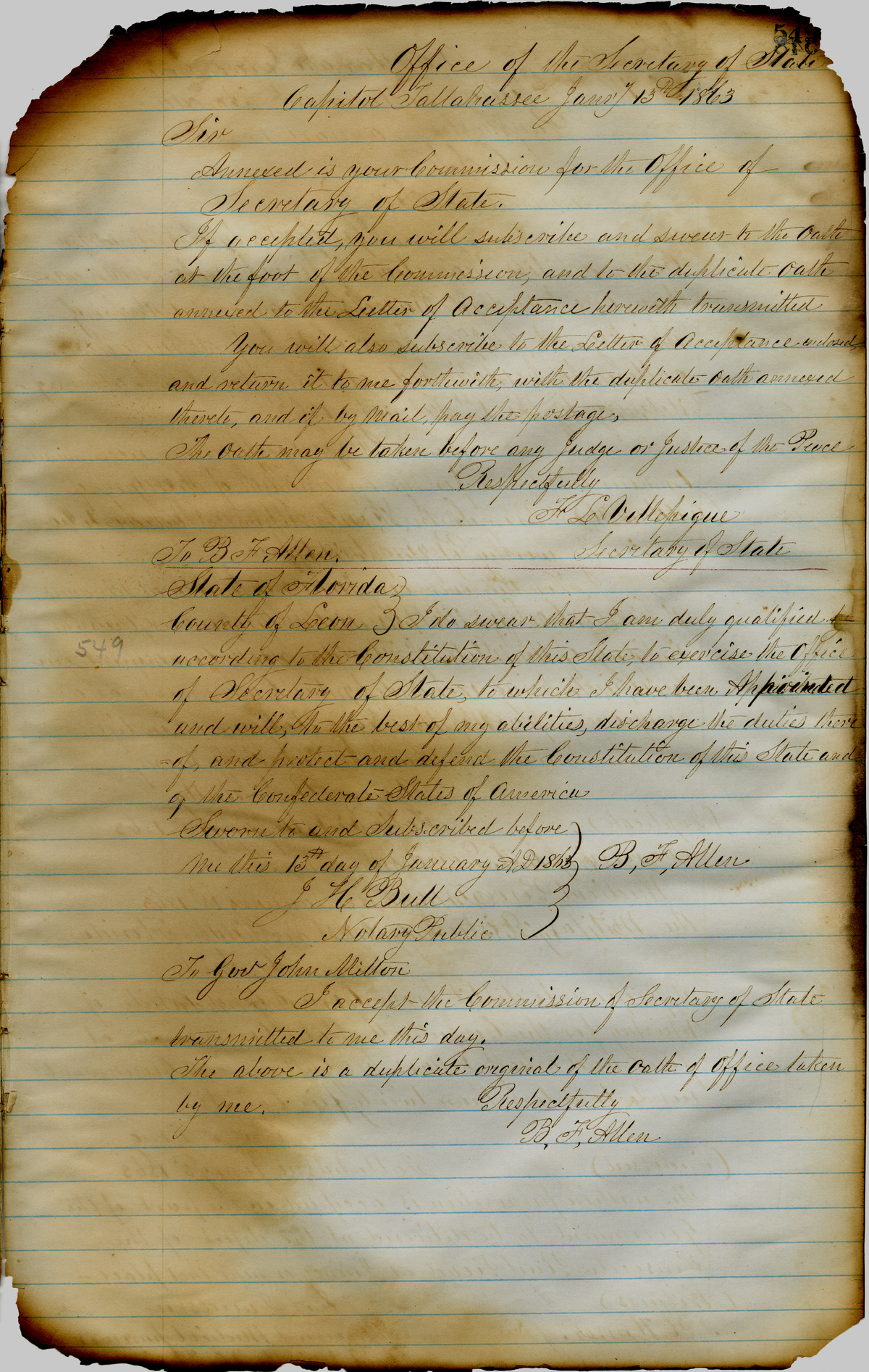 Milton Letterbook: January 13, 1863