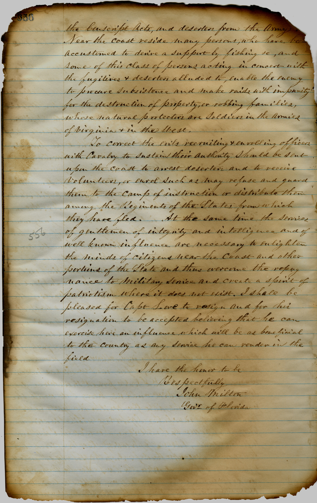 Office of the Governor of Florida. Milton Letterbook: December 6, 1862. 1862-12-06. State Archives of Florida, Florida Memory. Accessed 26 Nov. 2025.<https://www.floridamemory.com/items/show/266162>