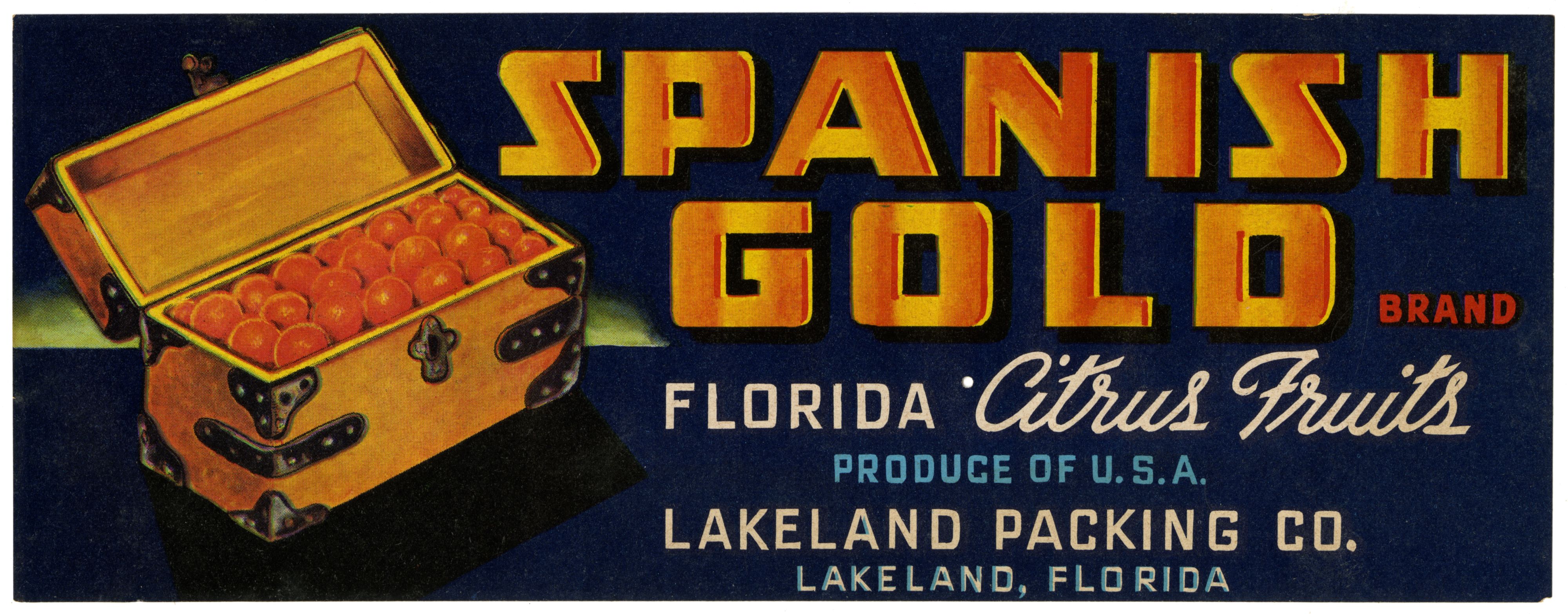Lakeland Packing Company. Spanish Gold Brand Florida Citrus Fruit Label. 1930 (circa). State Archives of Florida, Florida Memory. <https://www.floridamemory.com/items/show/342709>, accessed 24 December 2025.