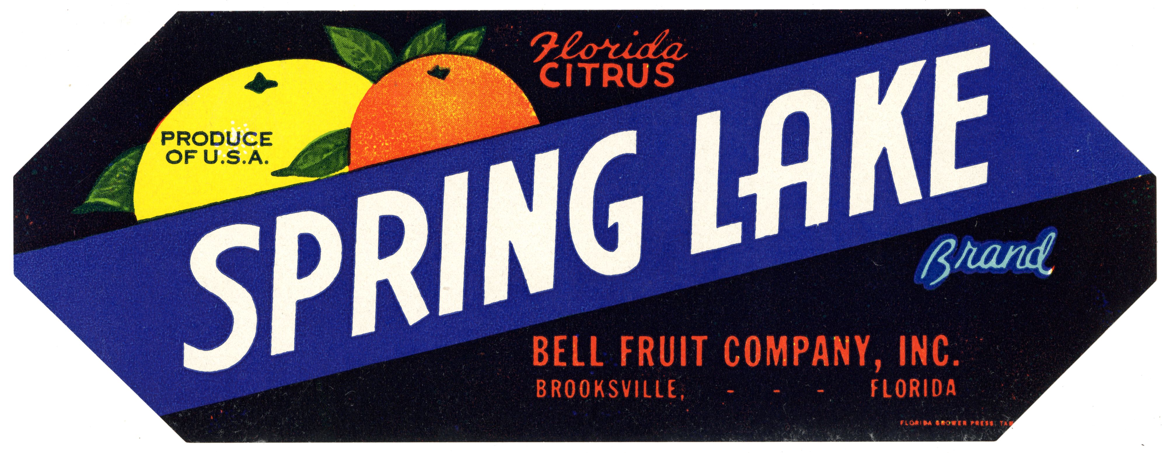 Bell Fruit Company, Incorporated. Spring Lake Brand Florida Citrus Label. 1930 (circa). State Archives of Florida, Florida Memory. Accessed 23 Dec. 2025.<https://www.floridamemory.com/items/show/342713>