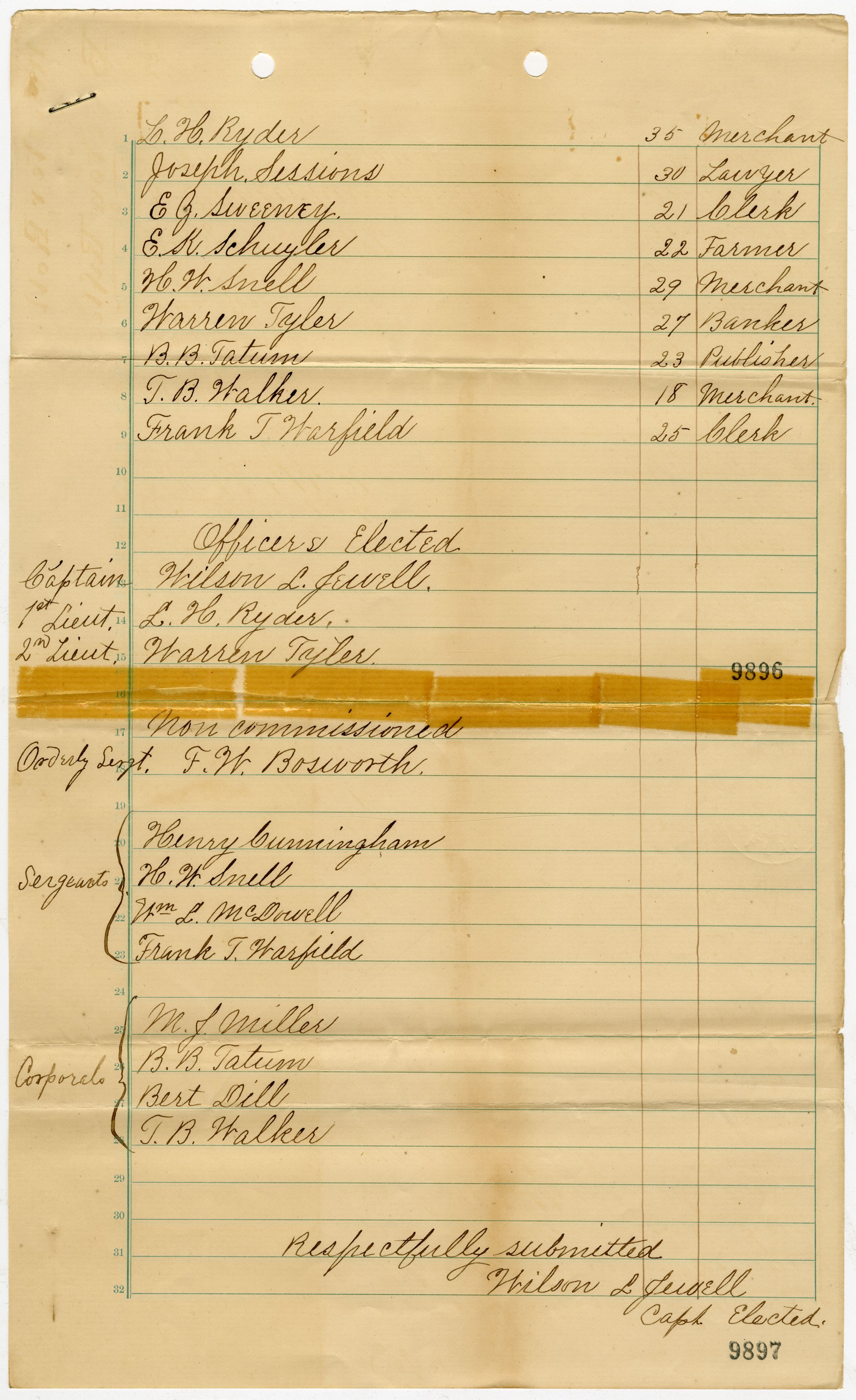 Florida. Office of the Adjutant General. Bartow Rifles Muster Roll, Polk County, 1888. April 4, 1888. State Archives of Florida, Florida Memory. <https://www.floridamemory.com/items/show/344670>, accessed 16 December 2025.