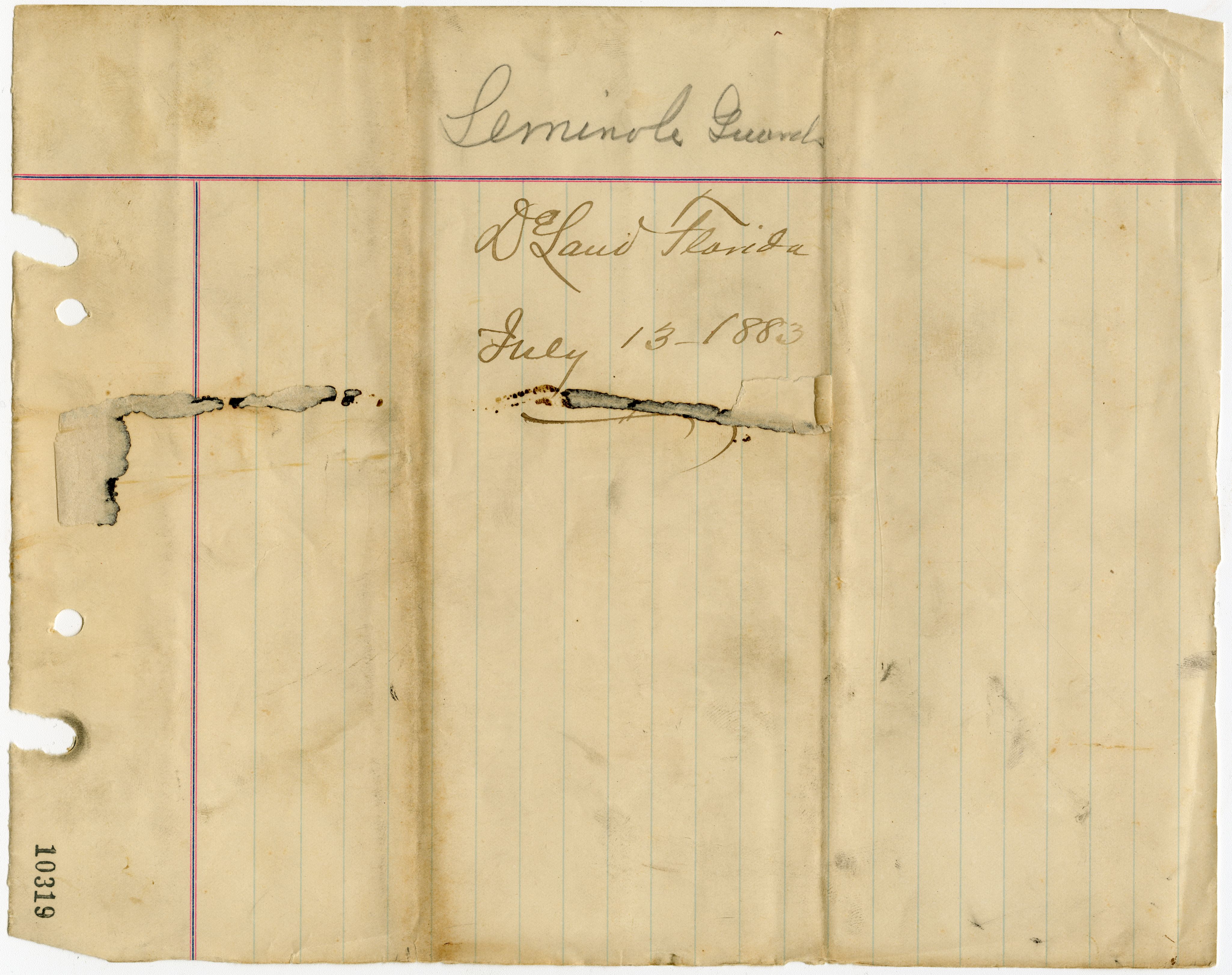 Florida. Office of the Adjutant General. Seminole Guards Roster, Volusia County, 1883. July 31, 1883. State Archives of Florida, Florida Memory. Accessed 15 Dec. 2025.<https://www.floridamemory.com/items/show/344685>