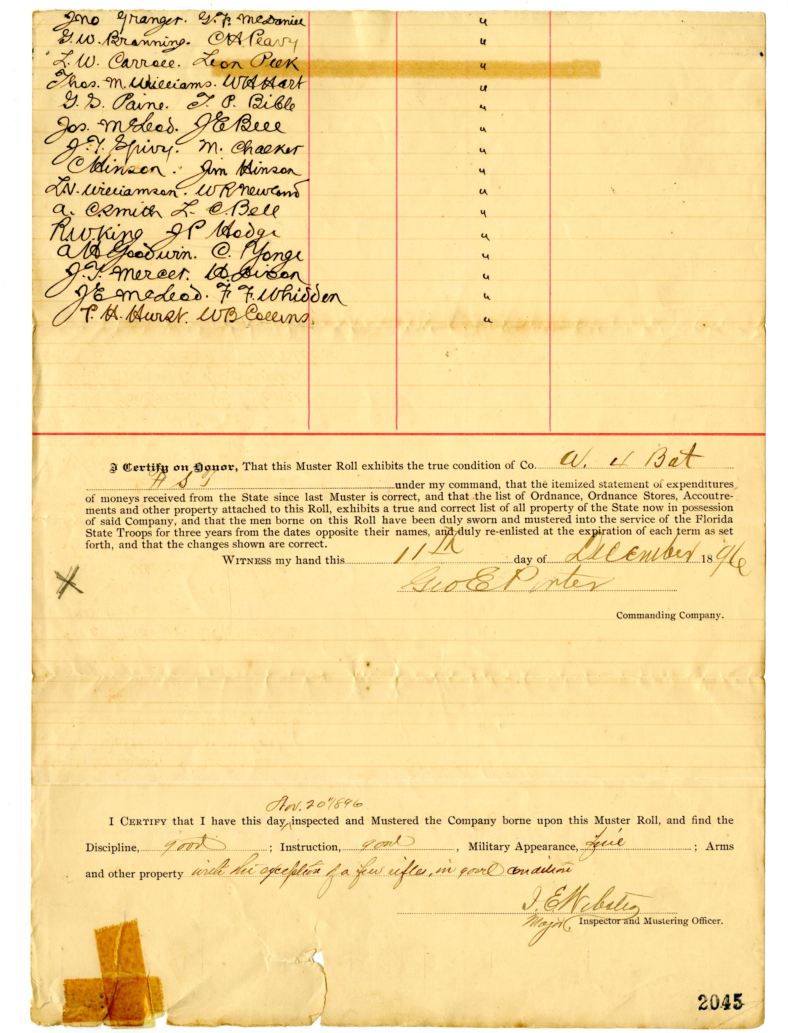 Florida. Office of the Adjutant General. Suwannee Rifles Muster Roll, Suwannee County, 1896. November 30, 1896. State Archives of Florida, Florida Memory. <https://www.floridamemory.com/items/show/344907>, accessed 27 December 2025.