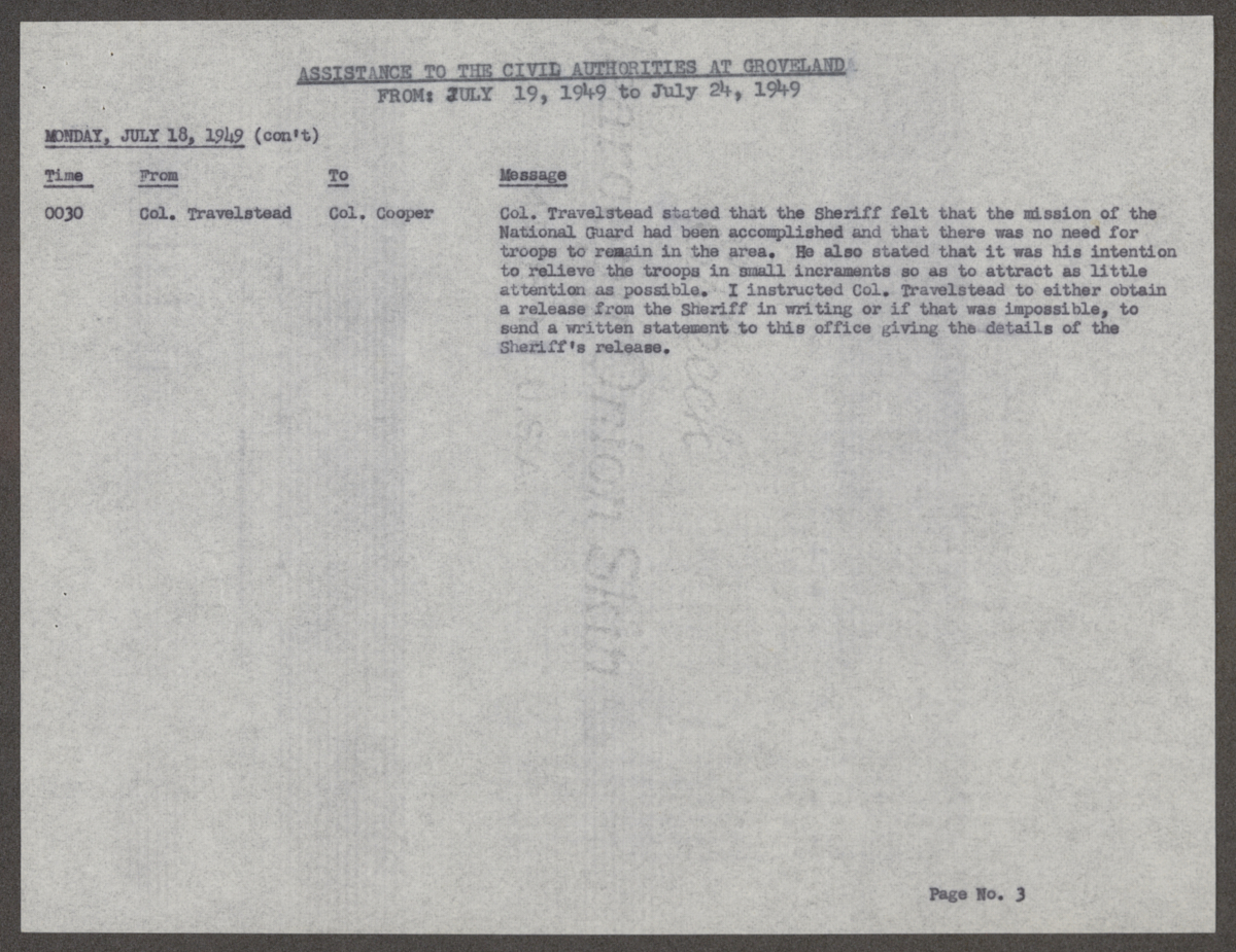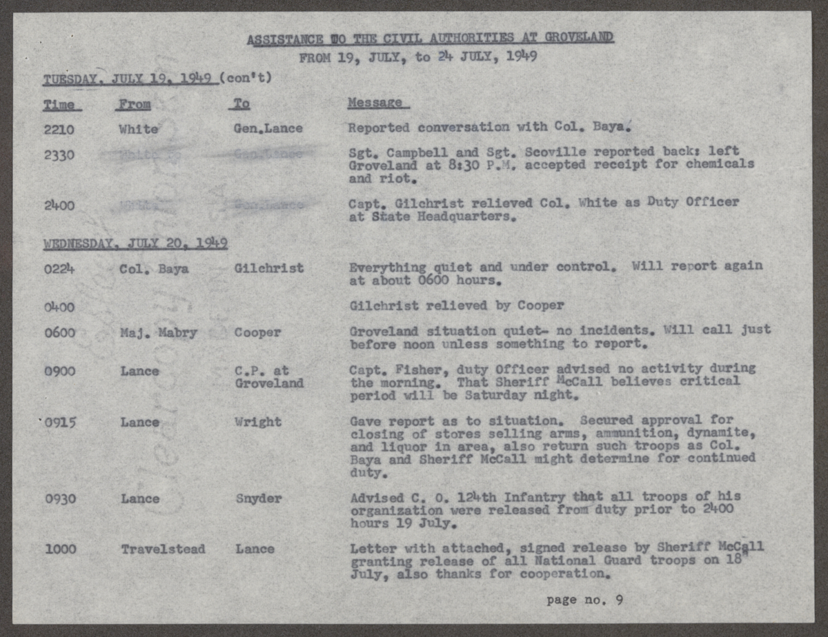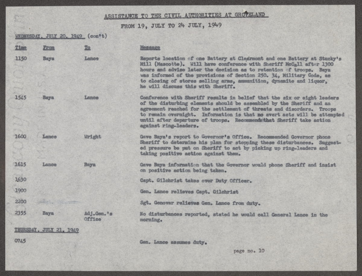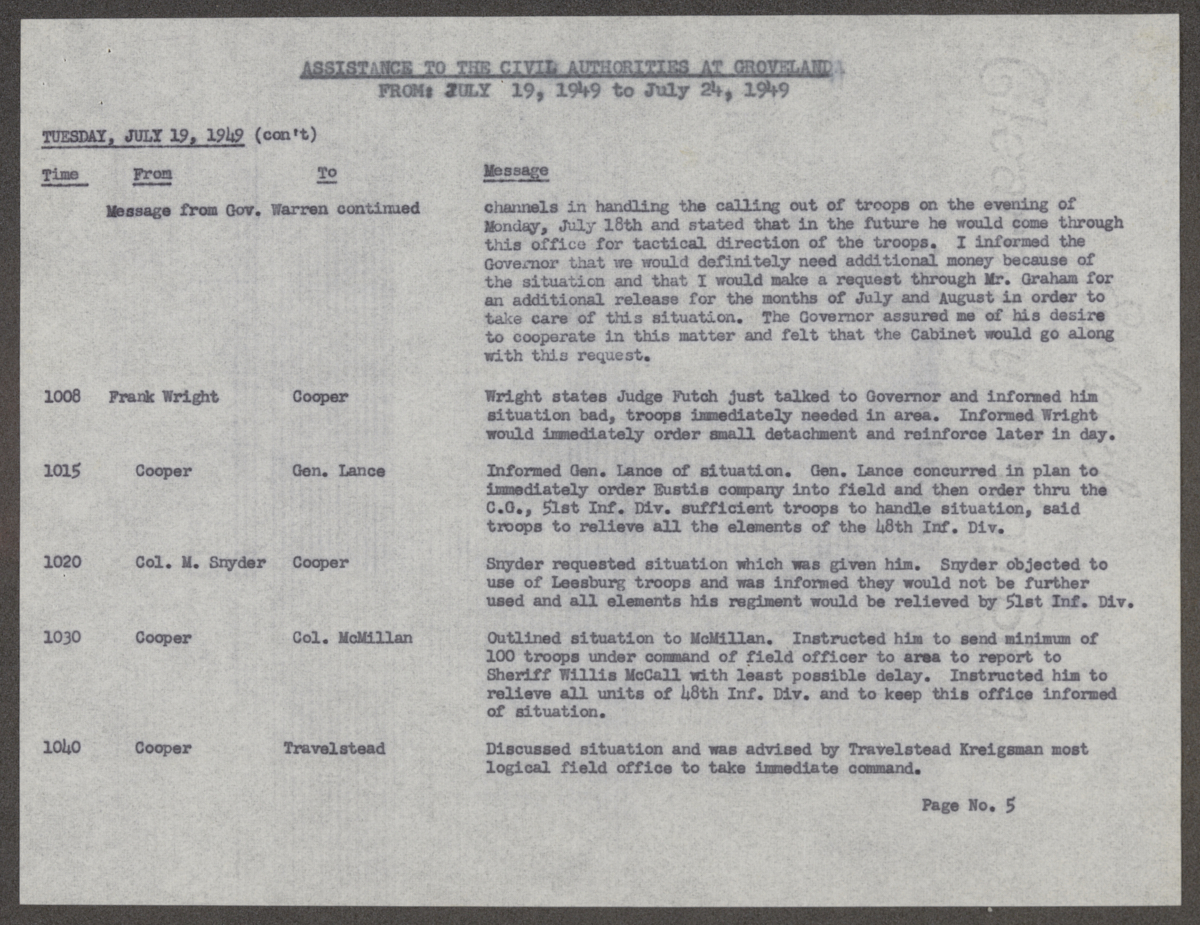 Assistance to the Civil Authorities at Groveland, From July 19, 1949 to July 24, 1949