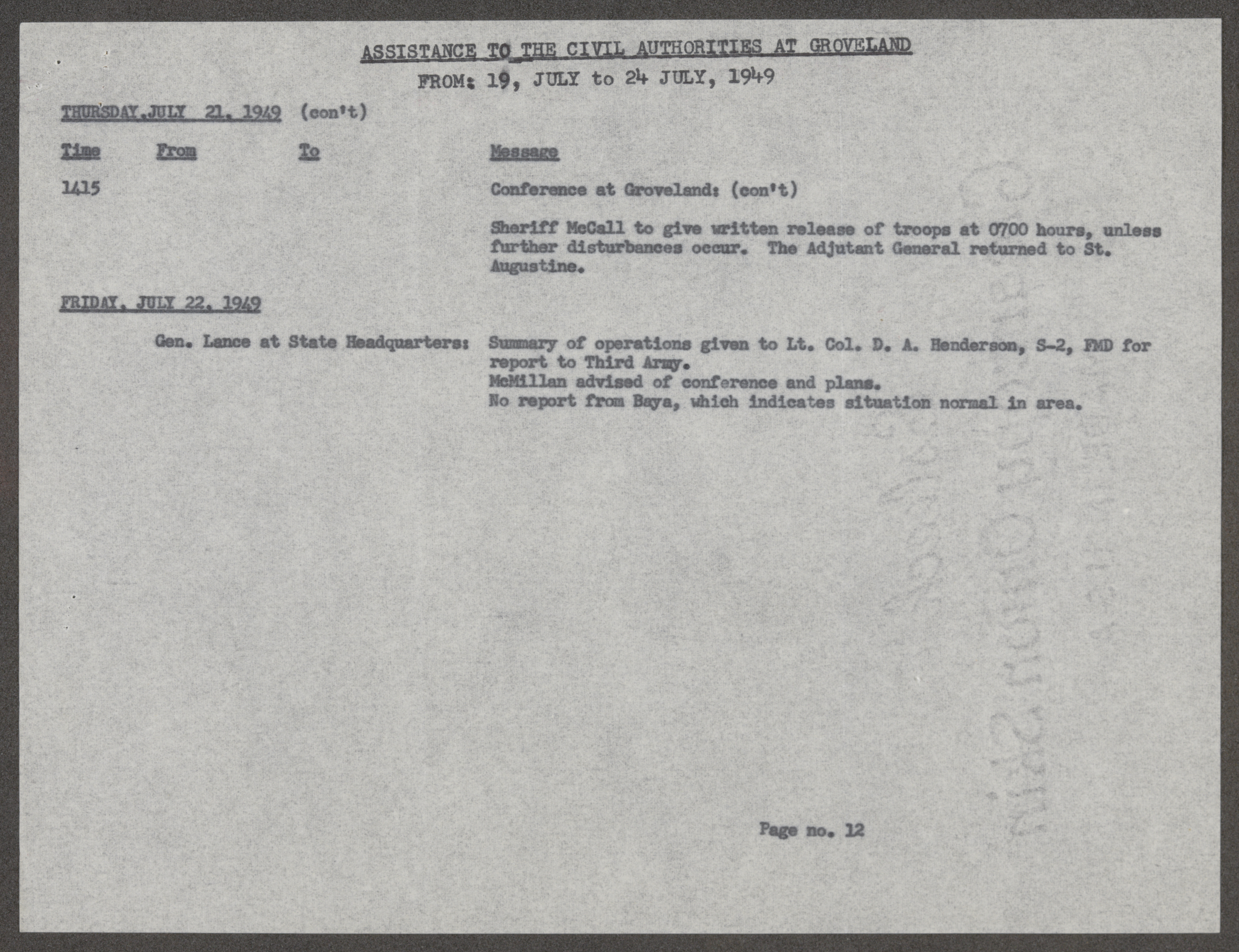 Cooper, Ralph W, 1905-1996. Assistance to the Civil Authorities at Groveland, From July 19, 1949 to July 24, 1949. 1949-07. State Archives of Florida, Florida Memory. Accessed 17 Dec. 2025.<https://www.floridamemory.com/items/show/351220>