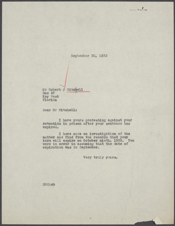 Letter from Governor Doyle E. Carlton to Robert J. Mitchell, 1932