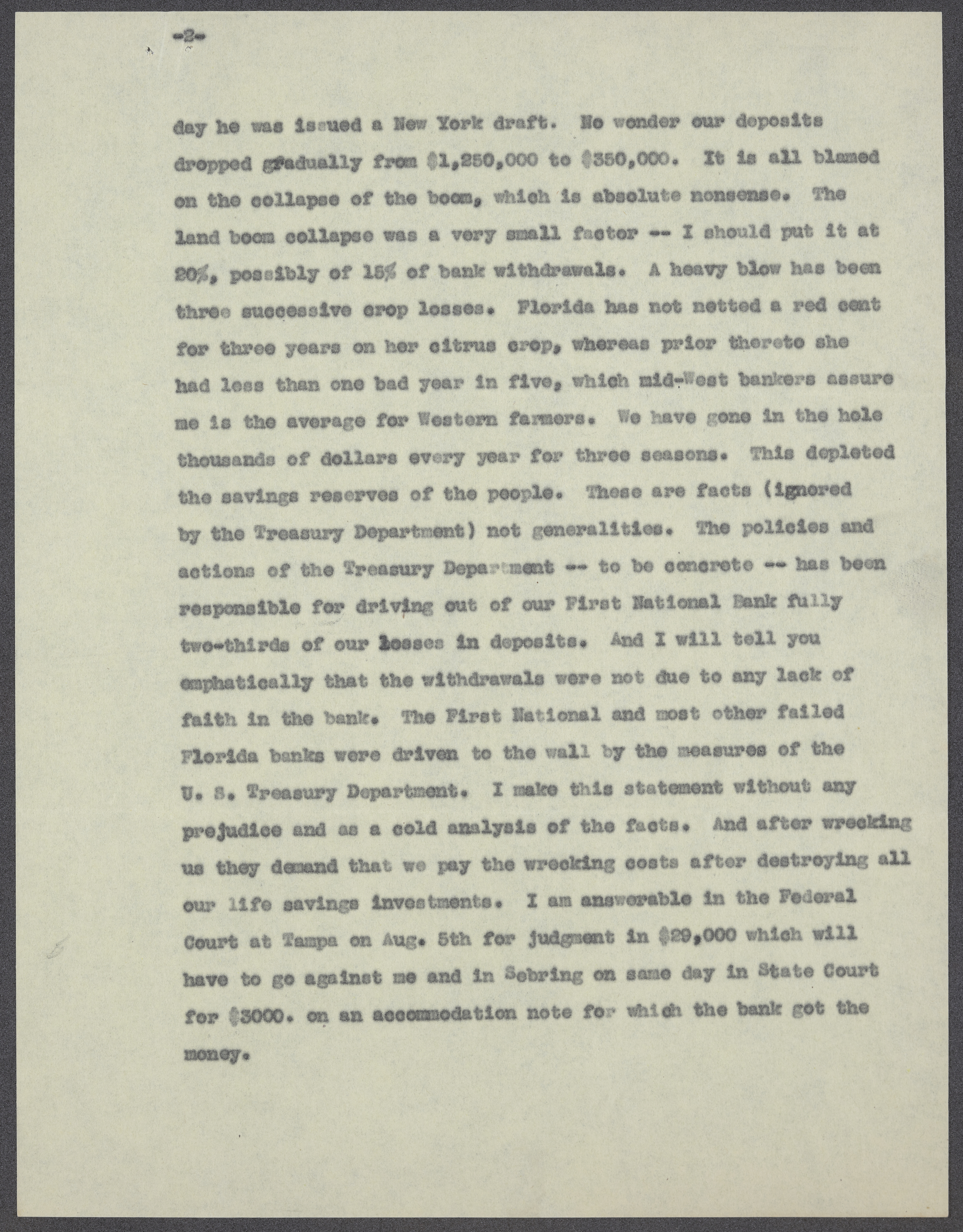 Correspondence Between F. L. Middleton, C. S. Middleton, and Governor Doyle E. Carlton Regarding the Failed Banks, 1929