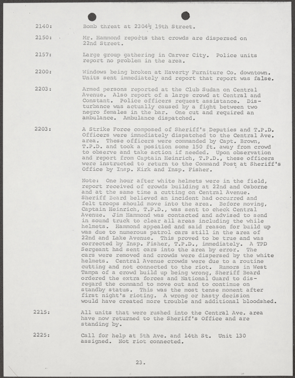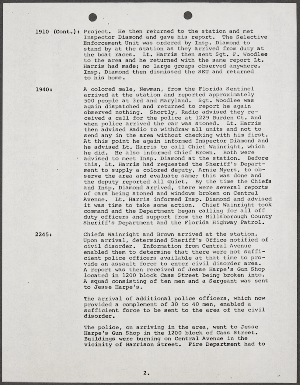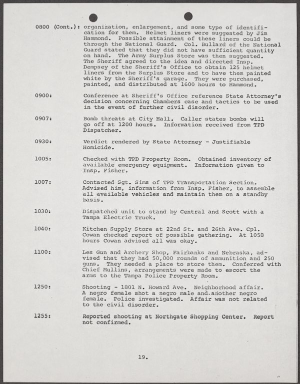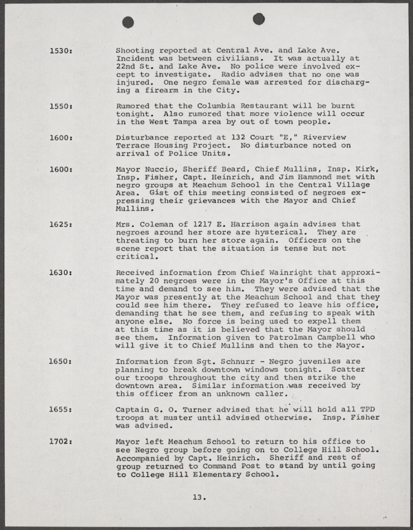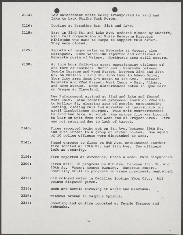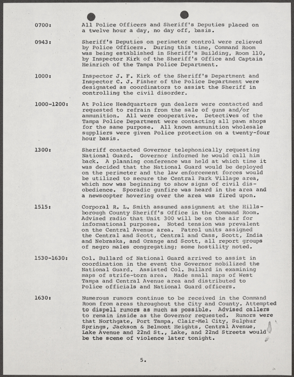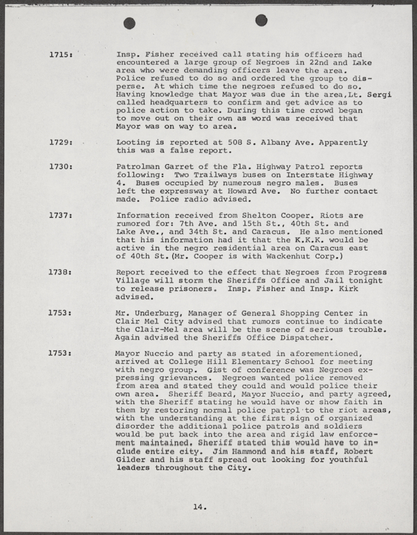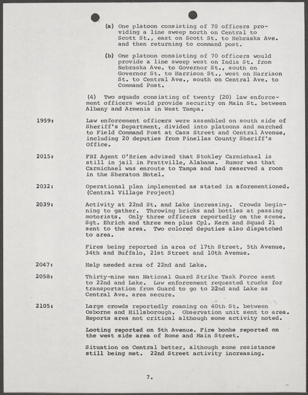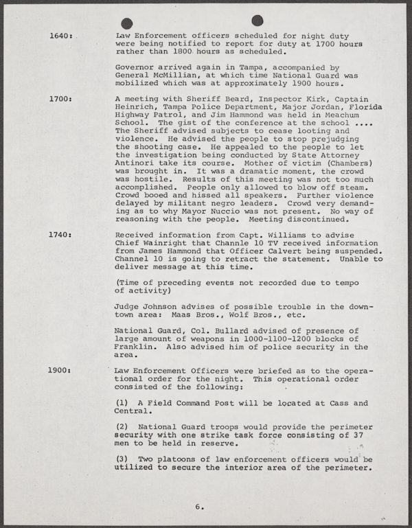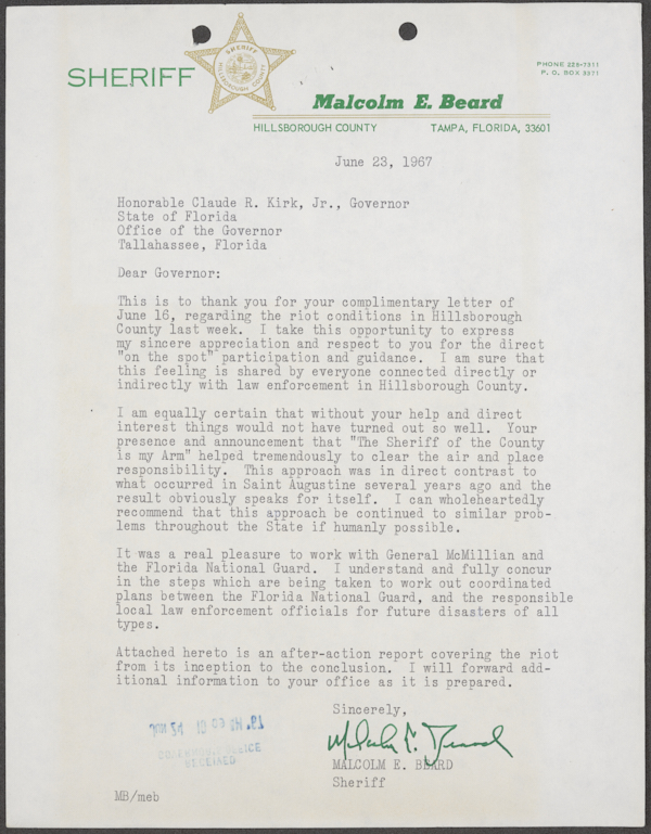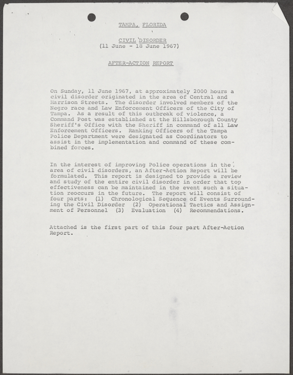 Beard, Malcolm E. (Malcolm Elmore), 1919-. After Action Report on Civil Disorder in Tampa, 1967. 1967. State Archives of Florida, Florida Memory. <https://www.floridamemory.com/items/show/351441>, accessed 16 February 2026.