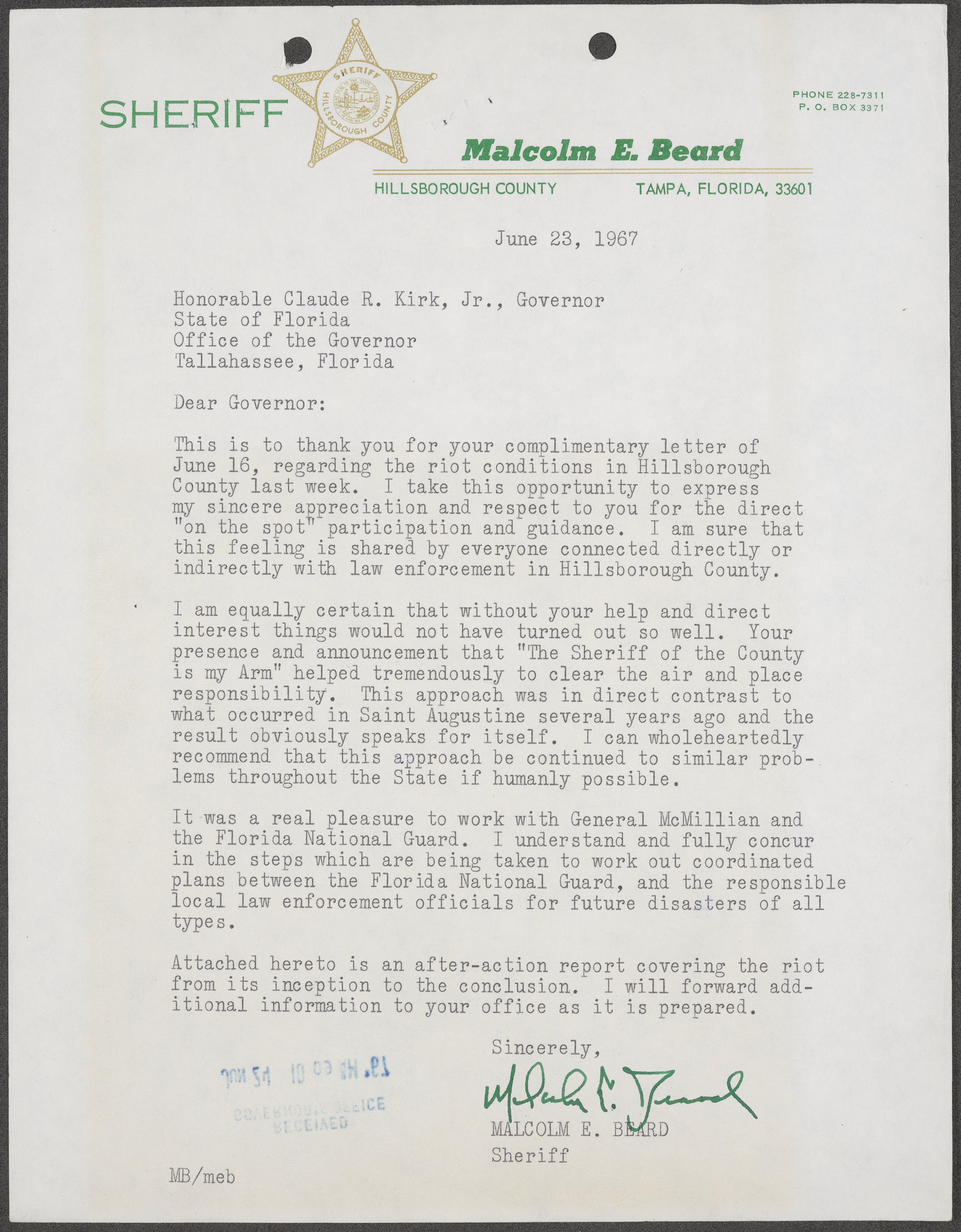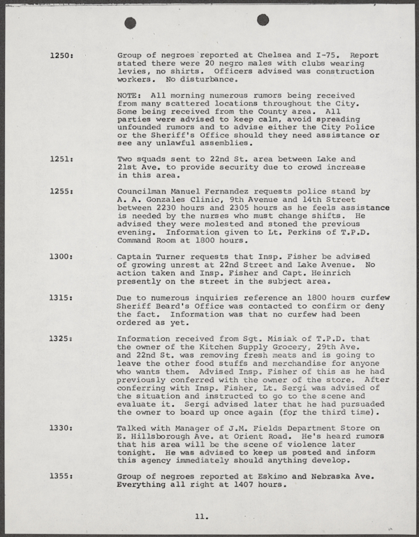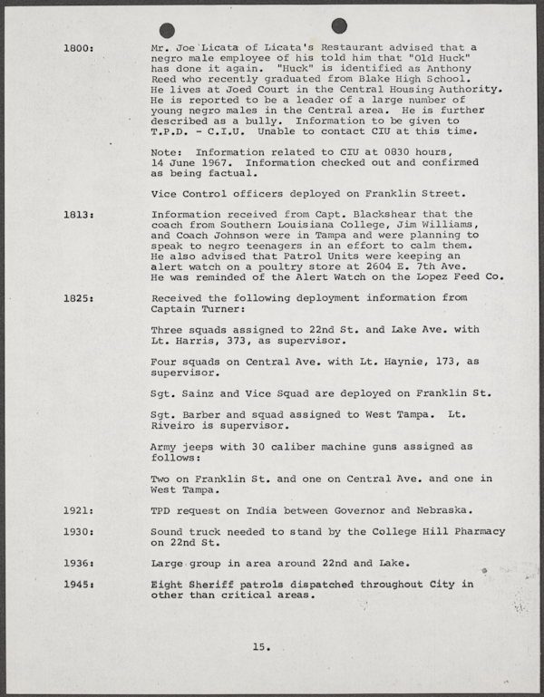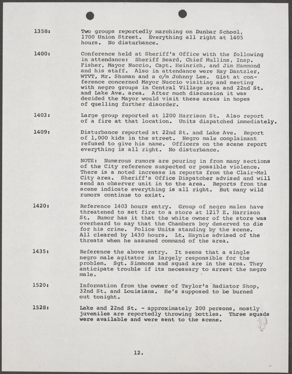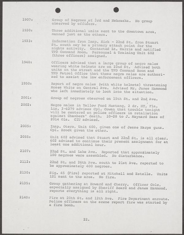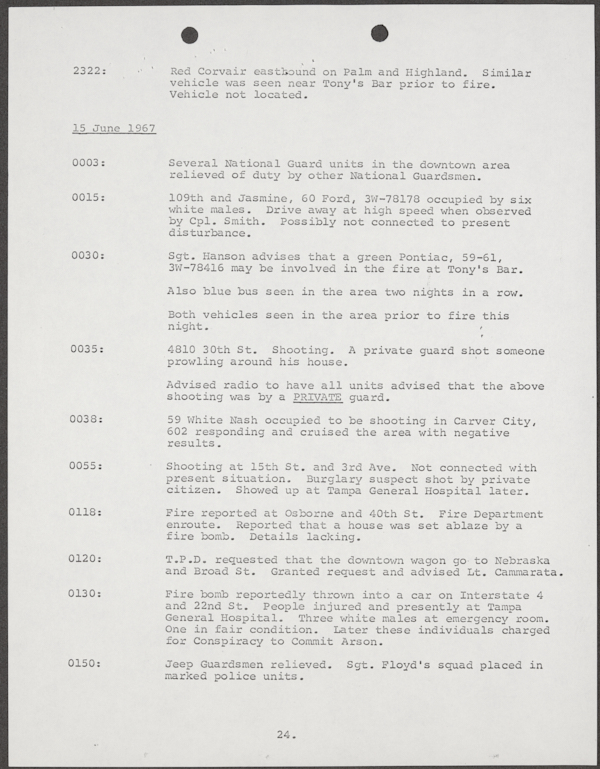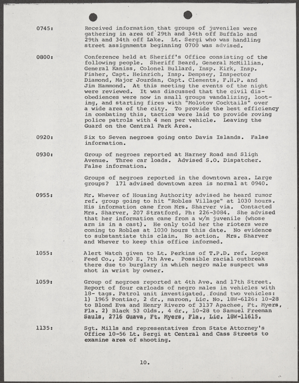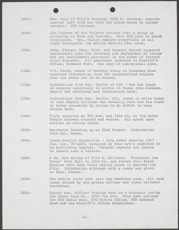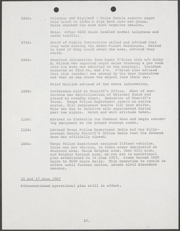 Beard, Malcolm E. (Malcolm Elmore), 1919-. After Action Report on Civil Disorder in Tampa, 1967. 1967. State Archives of Florida, Florida Memory. <https://www.floridamemory.com/items/show/351441>, accessed 16 February 2026.